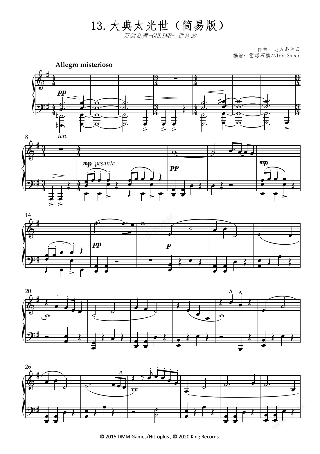 钢琴谱:大典太光世 近侍曲 【刀剑乱舞】(简易版)