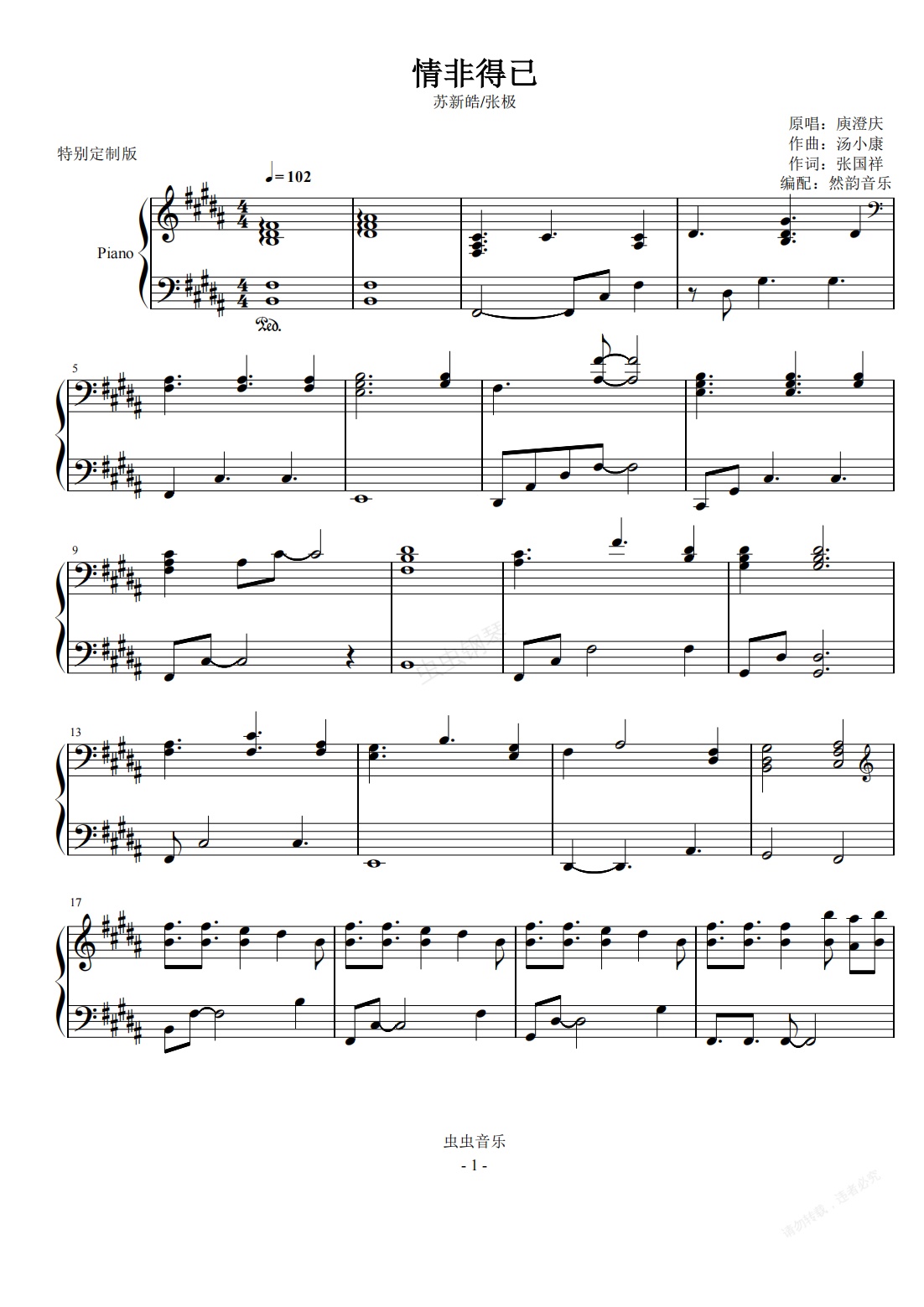 钢琴谱:情非得已 弹唱谱 苏新皓/张极 TF家族【然韵音乐编配】