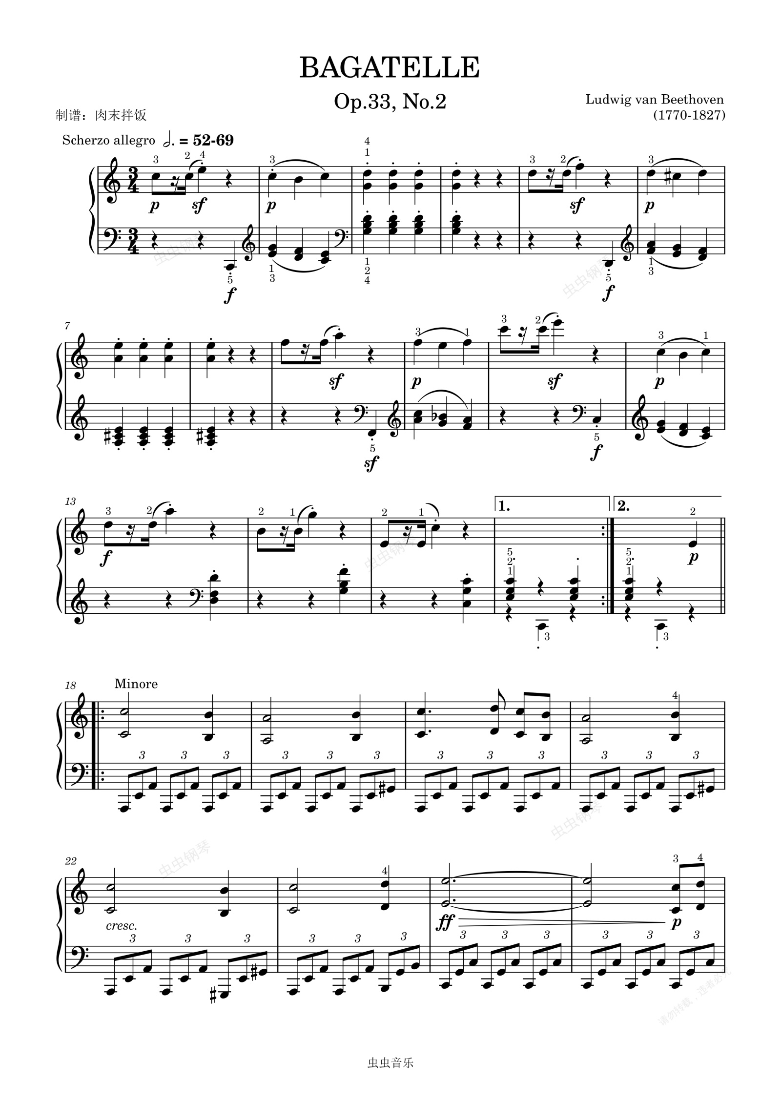 钢琴谱:BAGATELLE Op.33,No.2(贝多芬小品)--Ludwig van Beethoven
