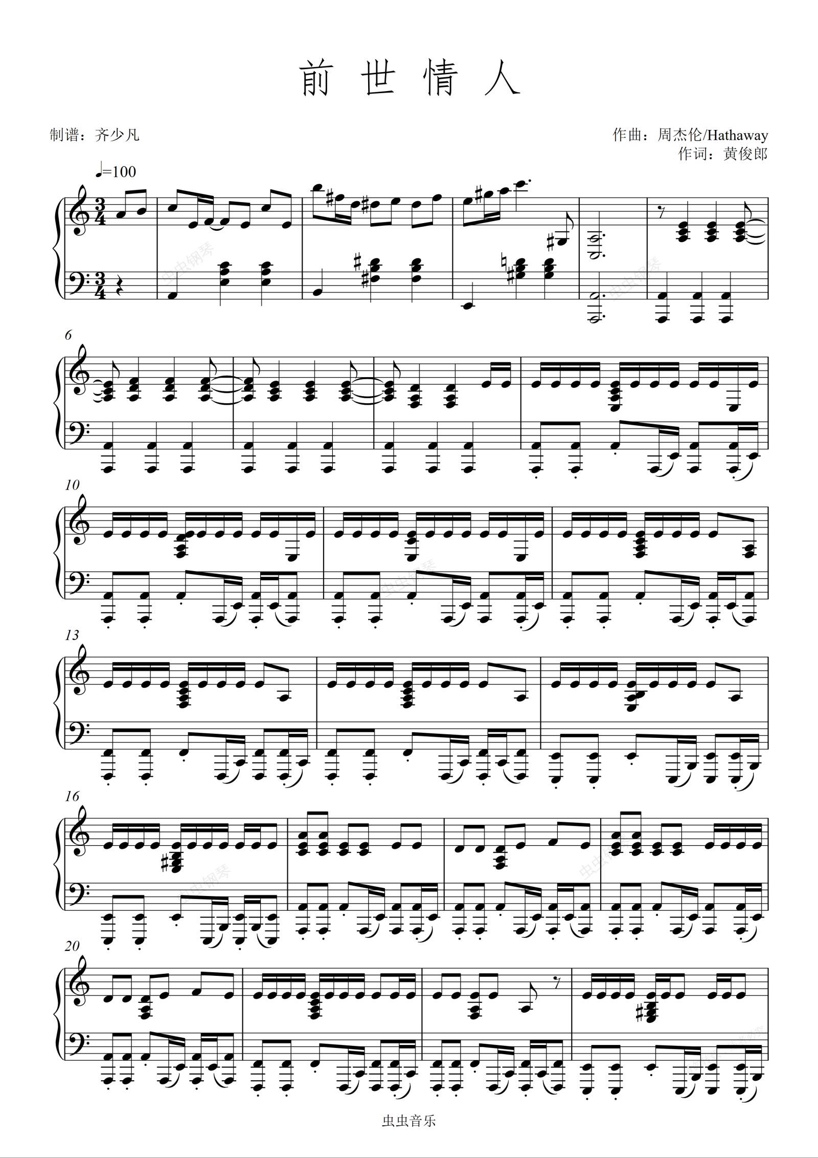 《前世情人》是周杰伦演唱的一首歌曲,由黄俊郎作词,周杰伦与女儿共同作曲,黄雨勋编曲,该曲先由2016年5月30日MV首播,后收录在6月24日发行的专辑《周杰伦的床边故事》中