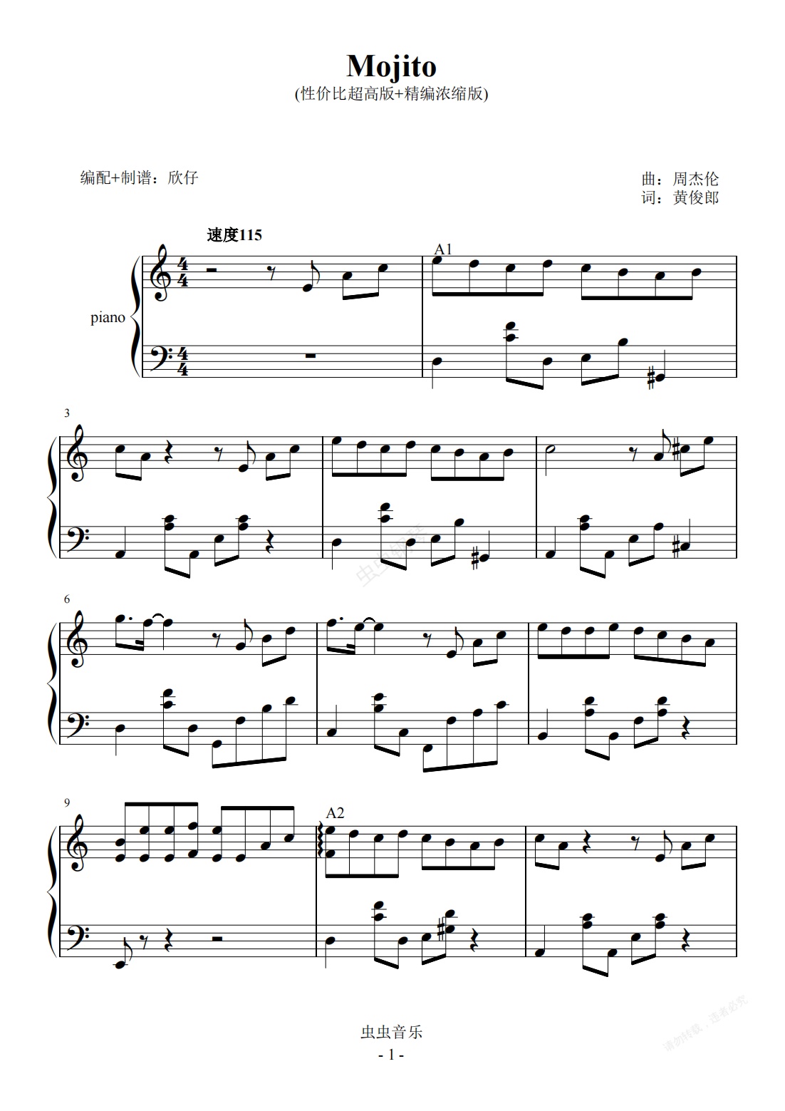 钢琴谱:C调(性价比超高版)《Mojito》(公式化浓缩版)