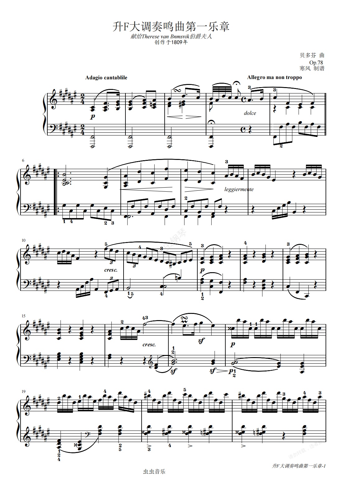钢琴谱:贝多芬-升F大调第24钢琴奏鸣曲第一乐章