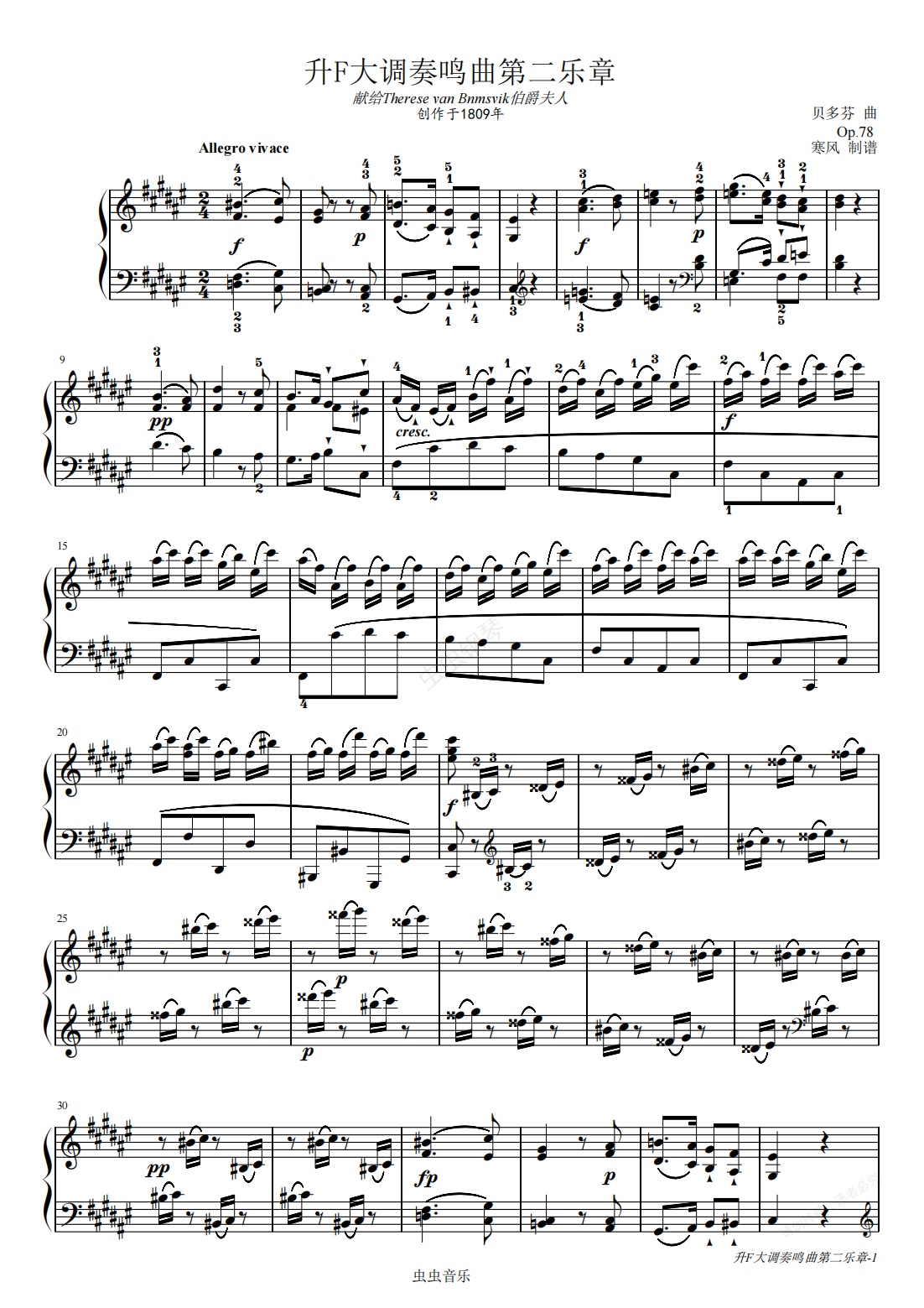 钢琴谱:贝多芬-升F大调第24钢琴奏鸣曲第一乐章