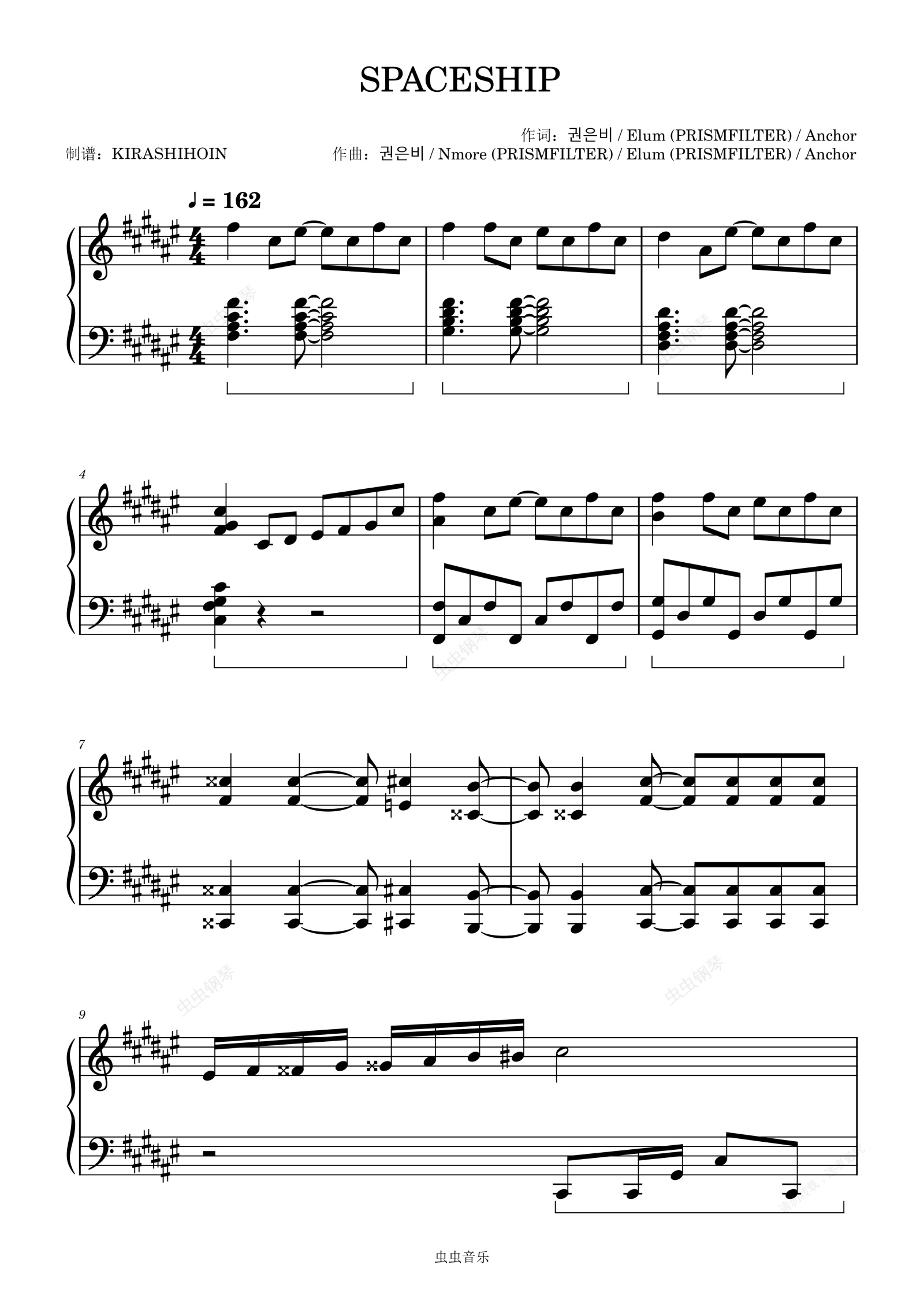 钢琴谱:SPACESHIP[#F调] - IZ*ONE