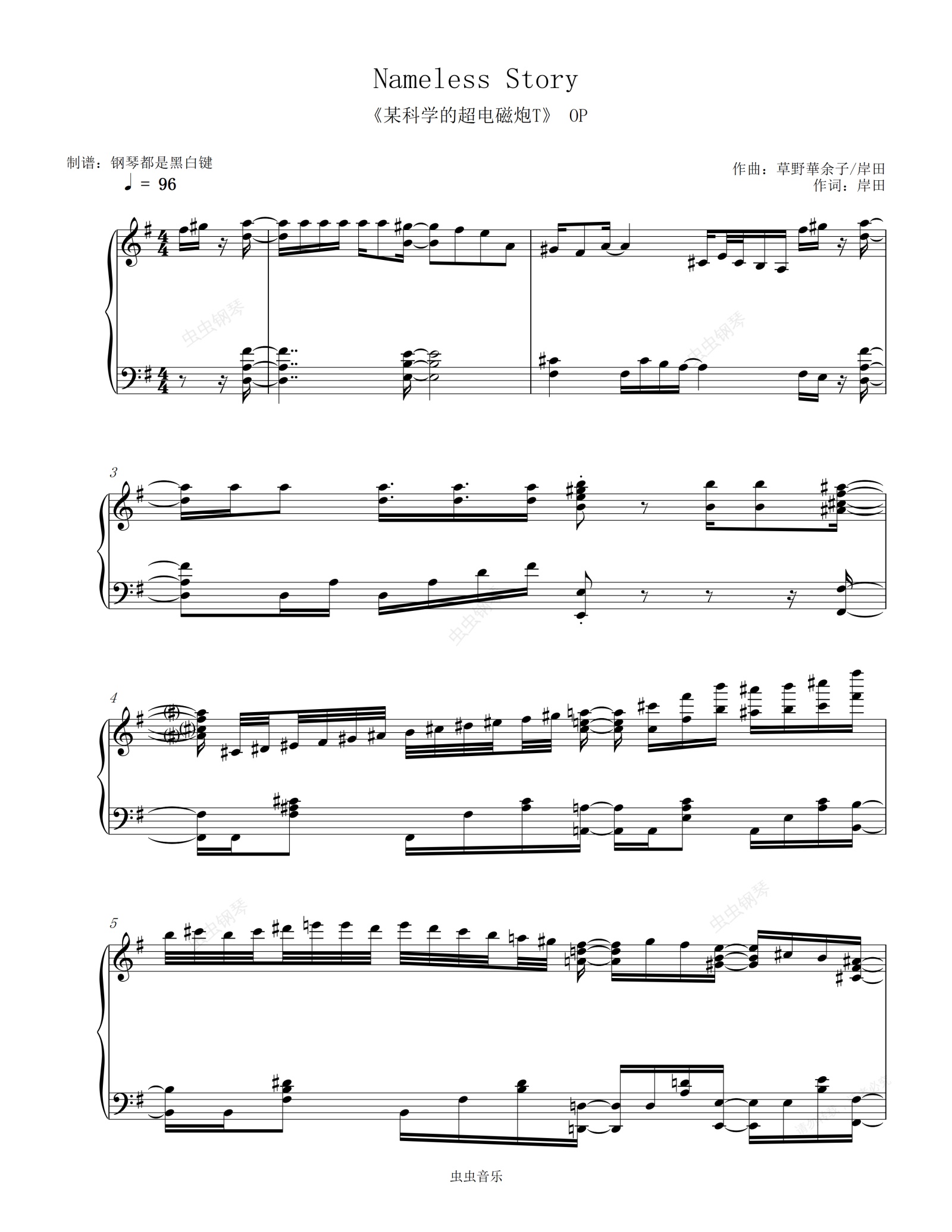 钢琴谱:《某科学的超电磁炮T》 OP-Nameless Story