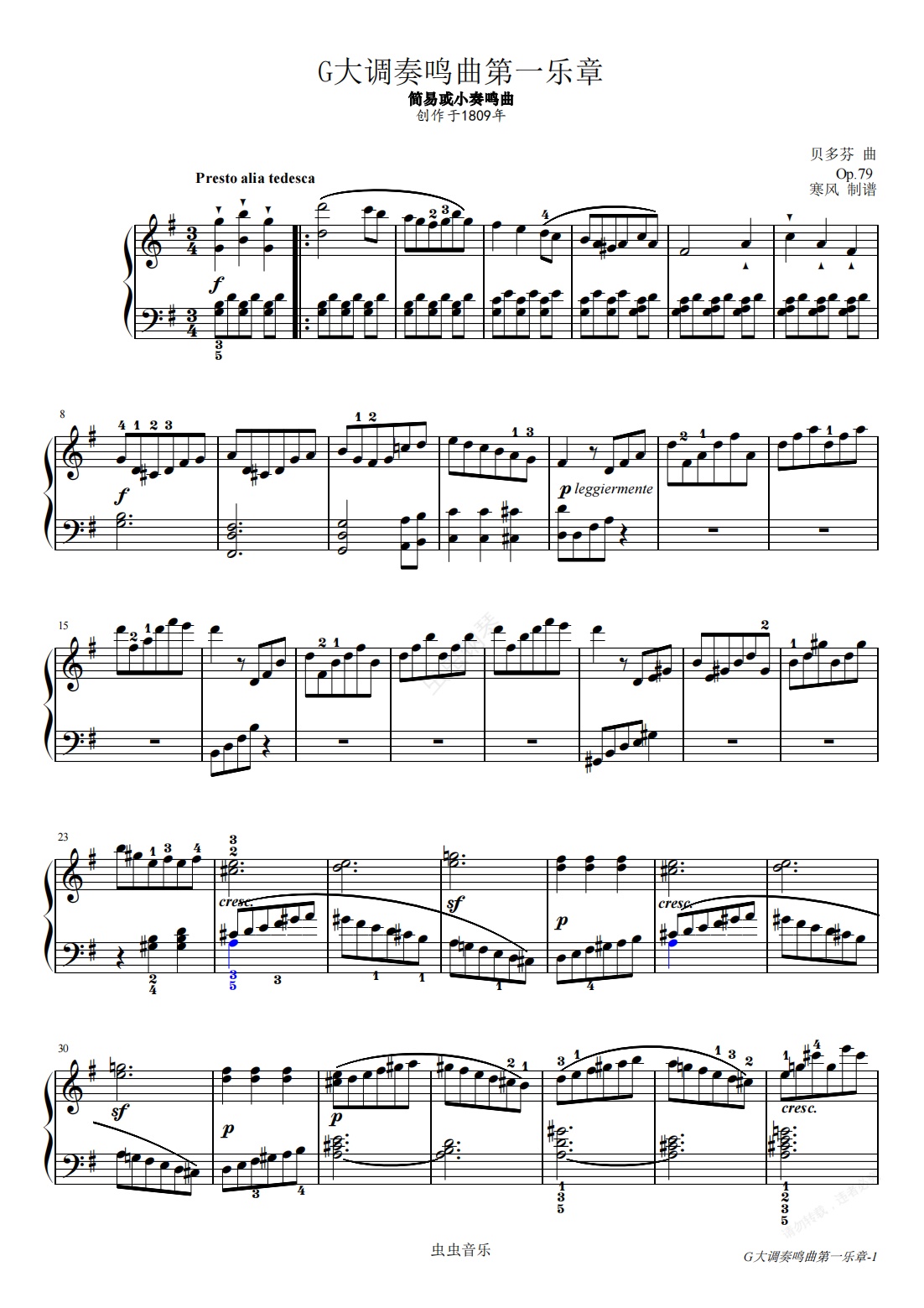 钢琴谱:贝多芬-G大调小奏鸣曲第一乐章