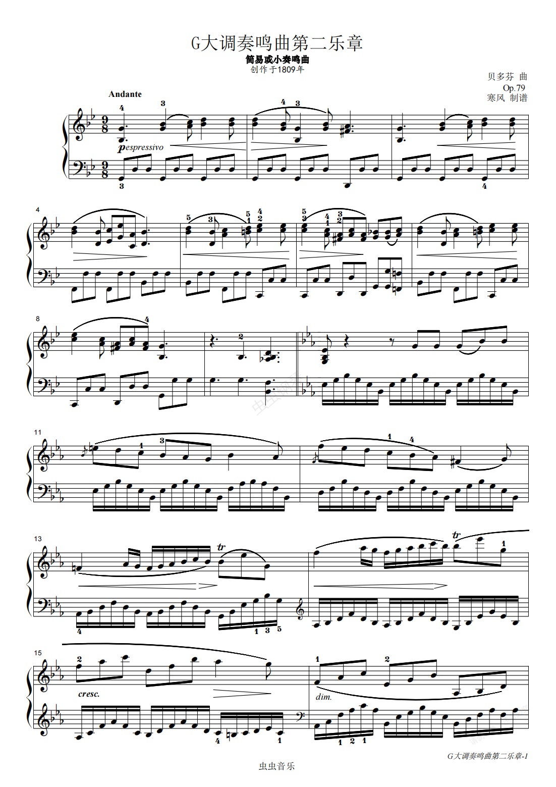 钢琴谱:贝多芬-G大调小奏鸣曲第二乐章