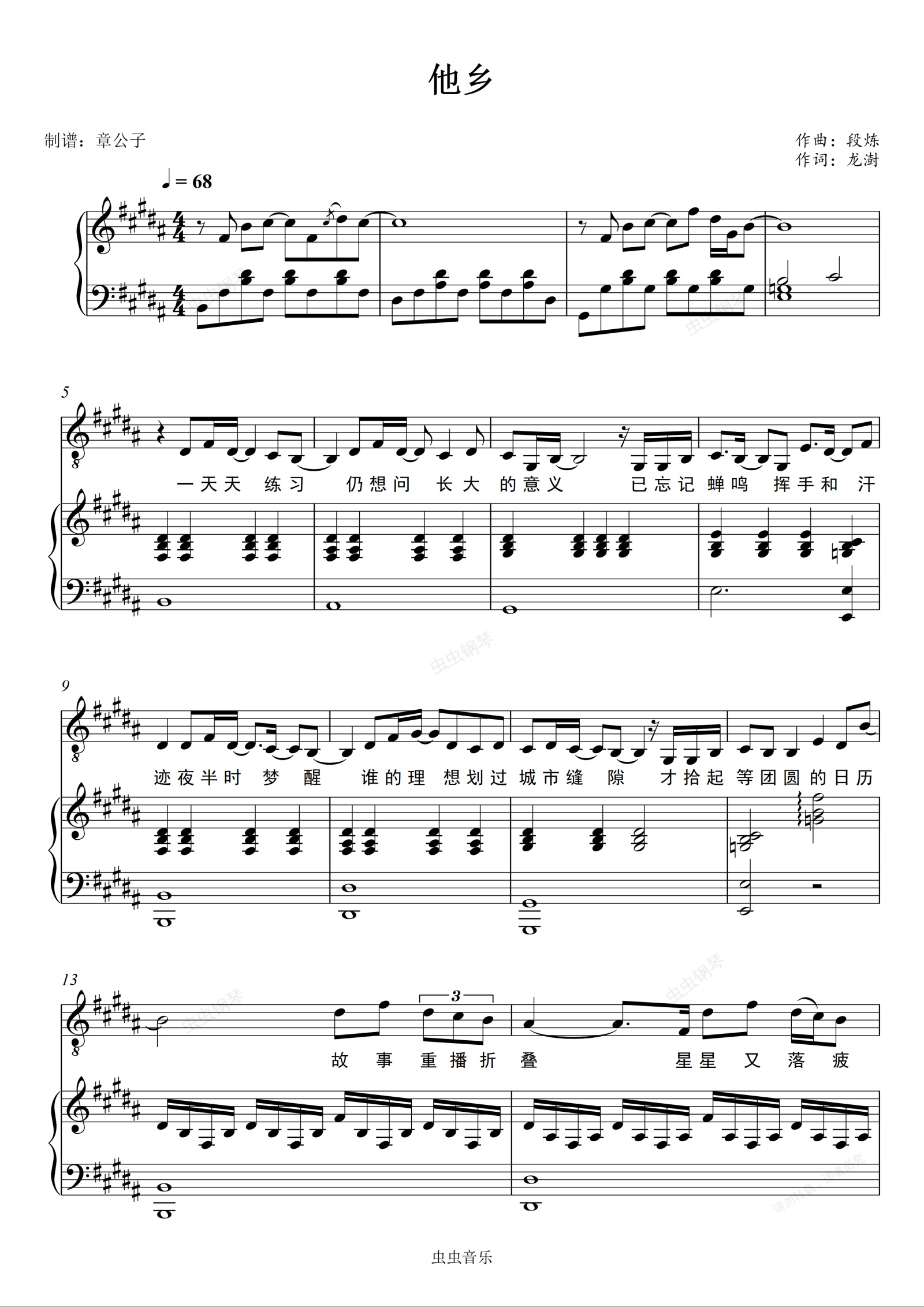 钢琴谱:《他乡》- 余佳运(《我在他乡挺好的》主题曲完整版)伴奏谱