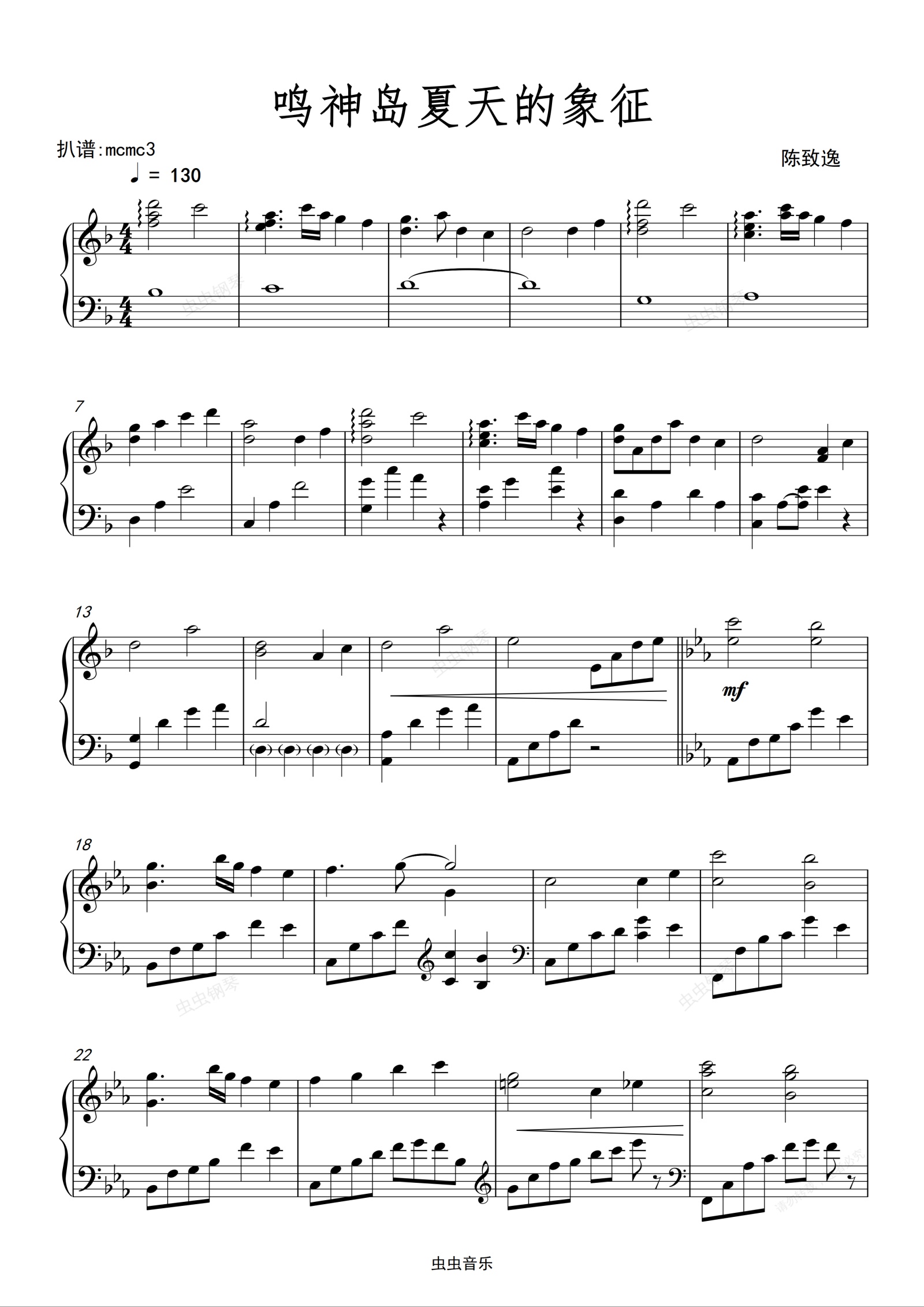 钢琴谱:【原神】宵宫角色PV——「鸣神岛夏天的象征」bgm