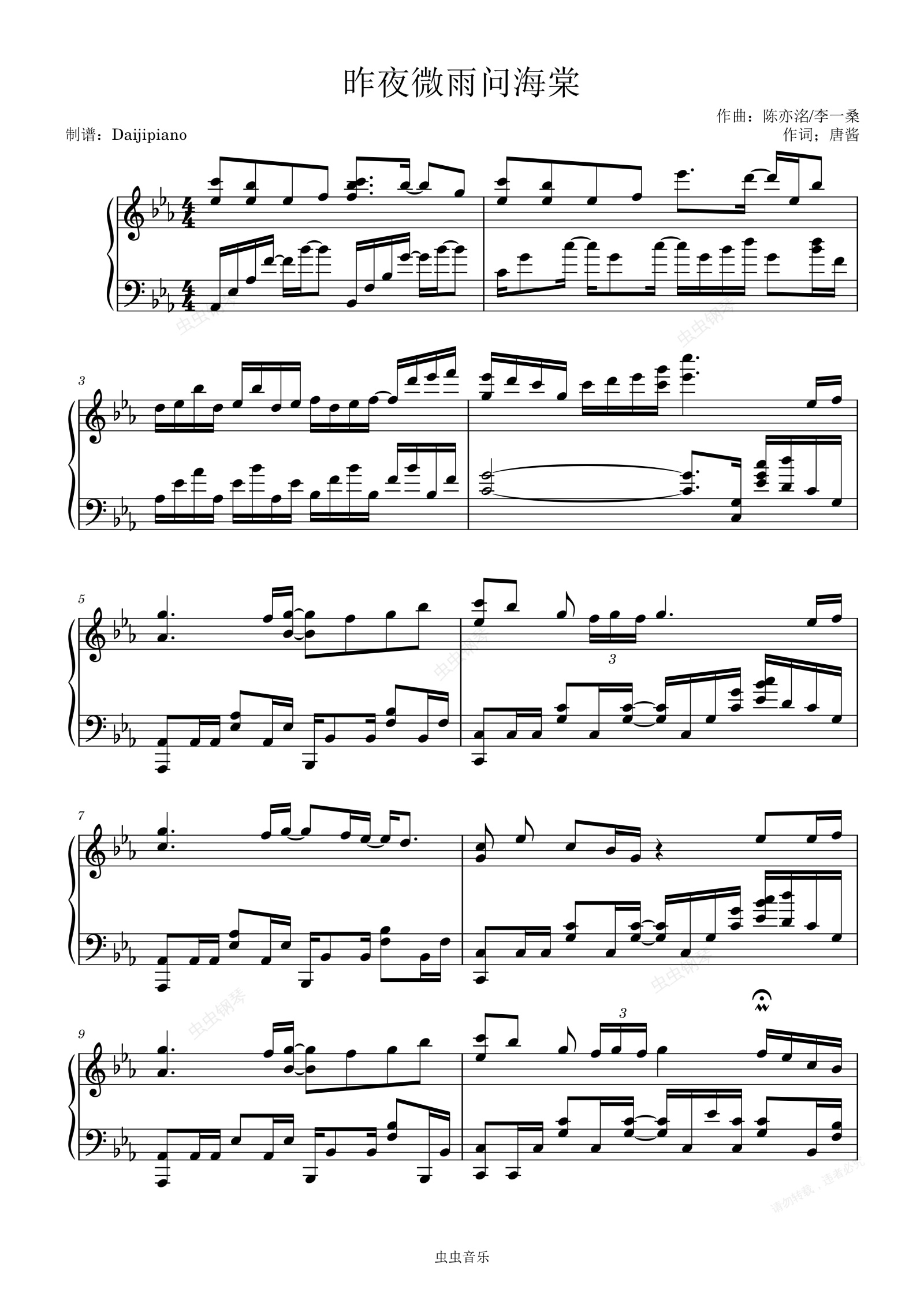 钢琴谱:《晚夜微雨问海棠》完整版高燃炫技钢琴谱