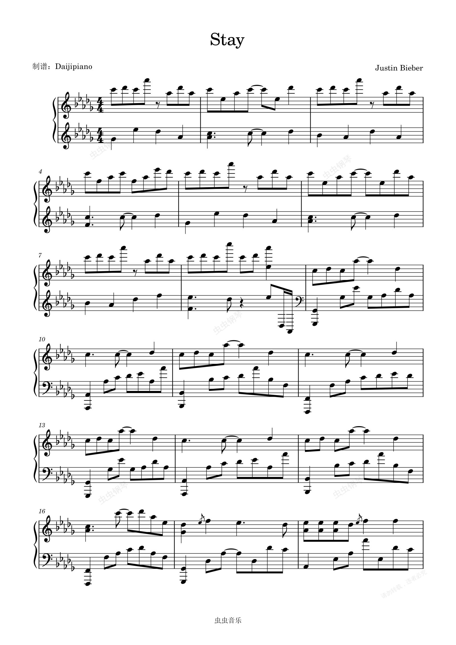 钢琴谱:《Stay》完整版高燃炫技钢琴谱-Justin Bieber