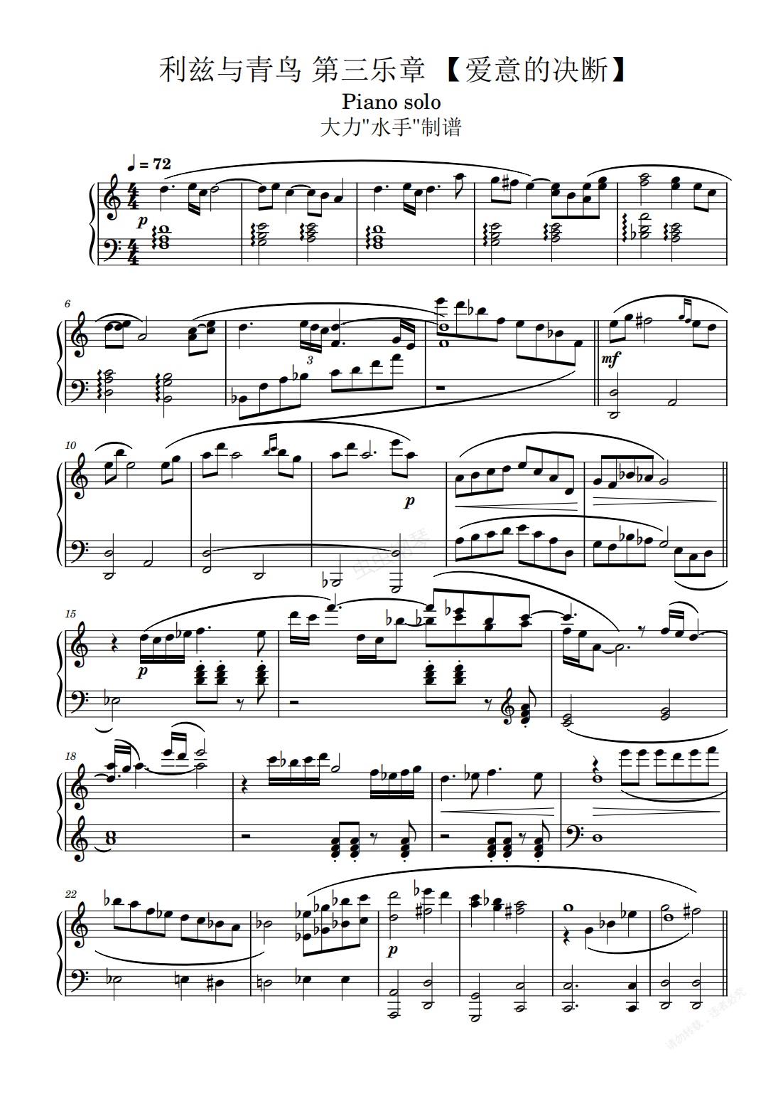 钢琴谱:利兹与青鸟第三乐章钢琴独奏