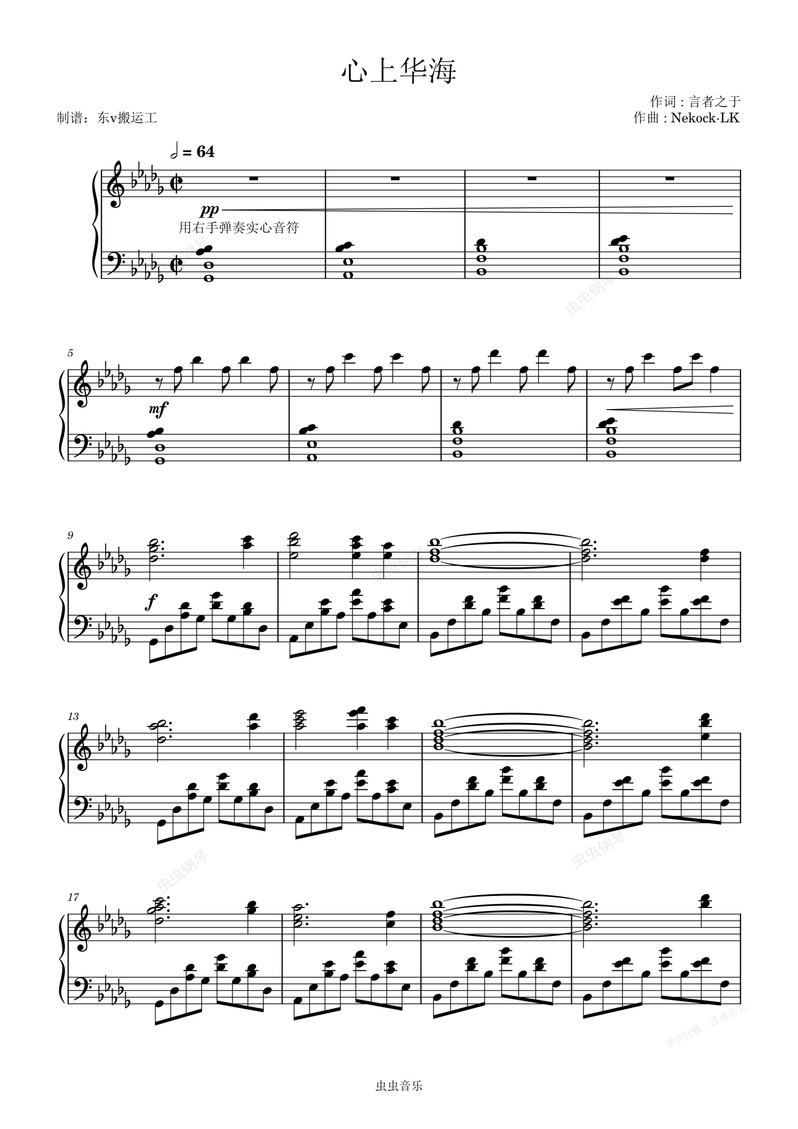 钢琴谱:心上华海_心华
