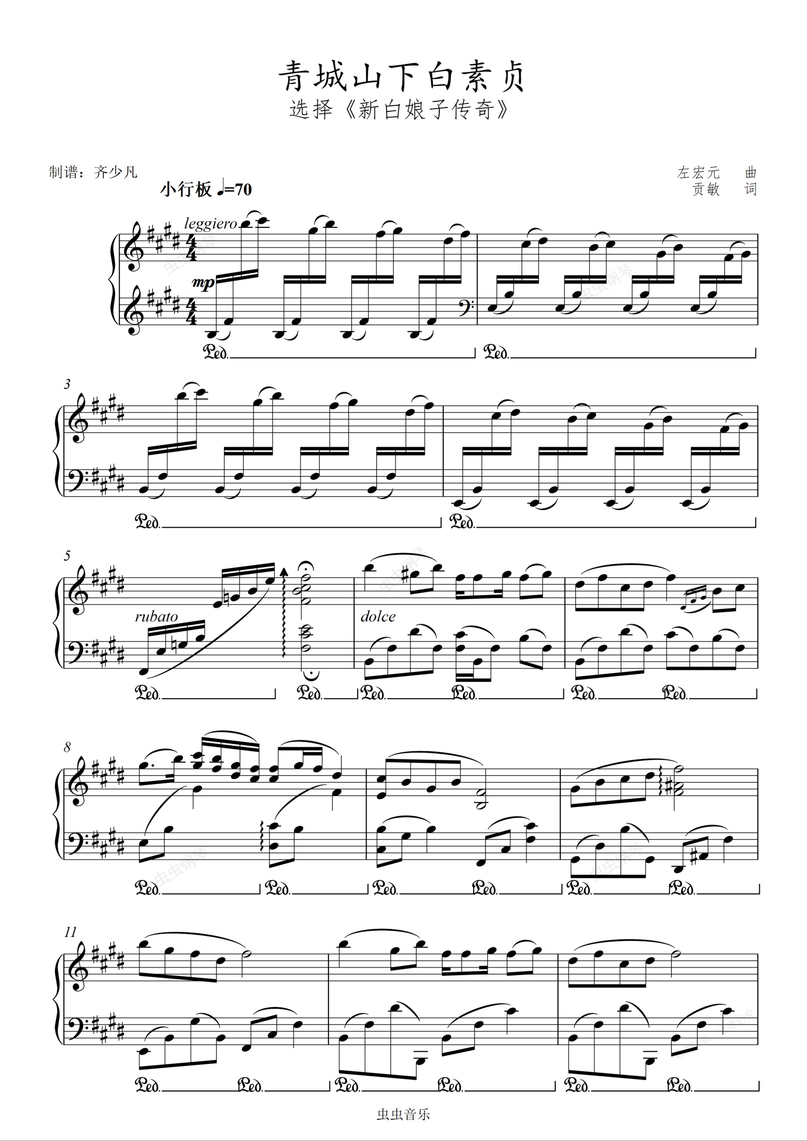 钢琴谱:【唯美】青城山下白素贞-又名“前世今生”