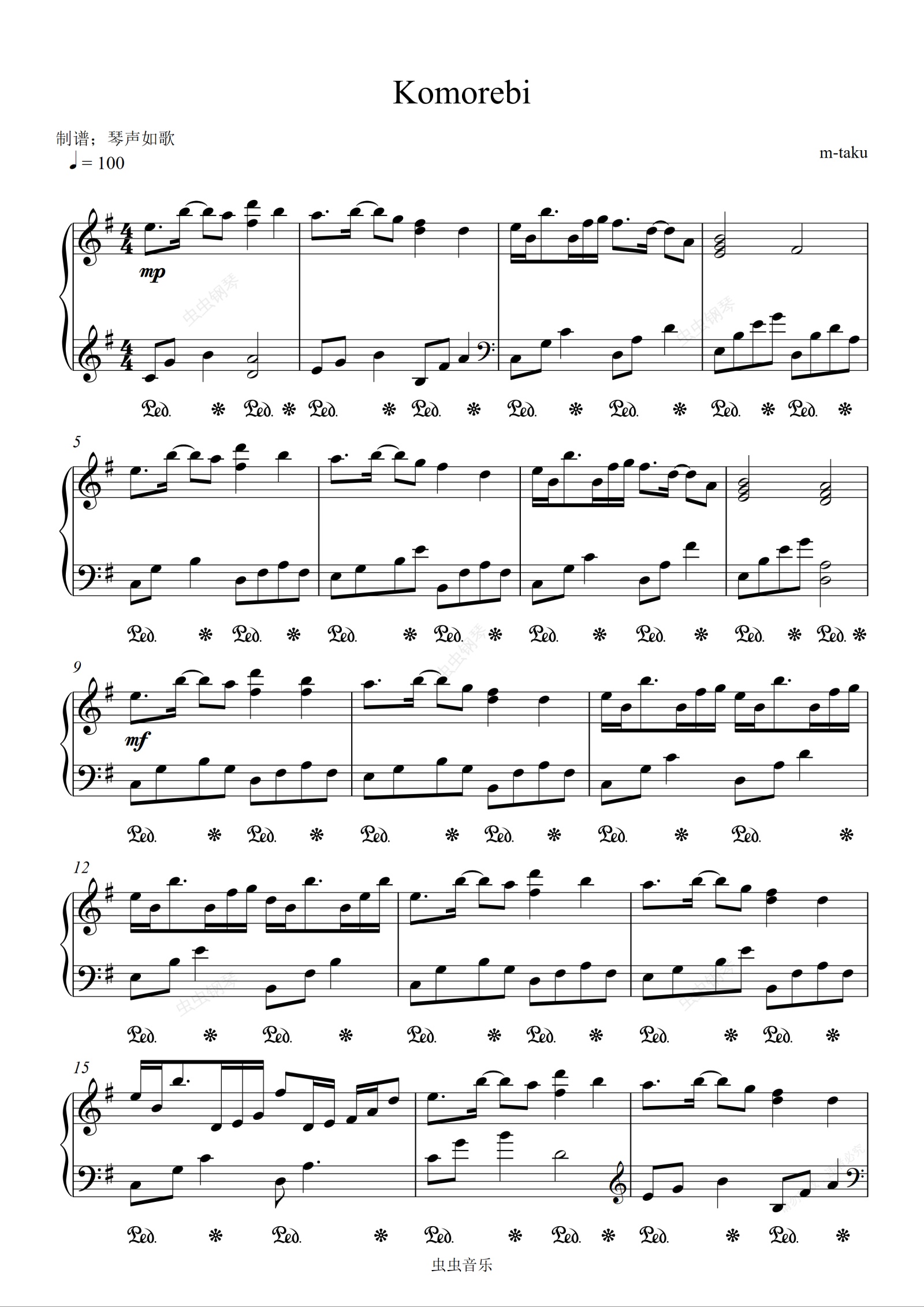 钢琴谱:Komorebi-【非常治愈纯音乐】