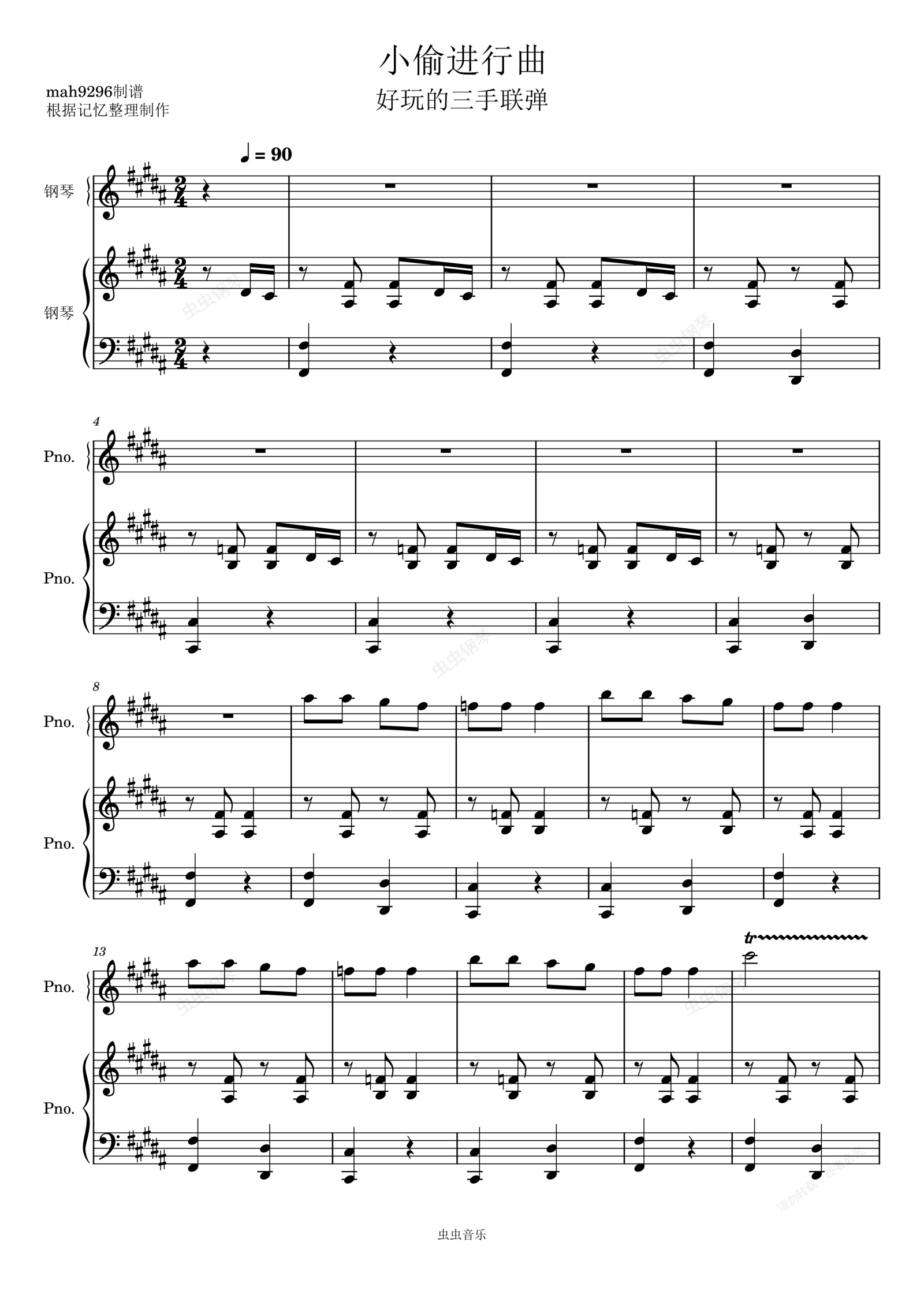 钢琴谱:小偷进行曲-好玩的三手联弹