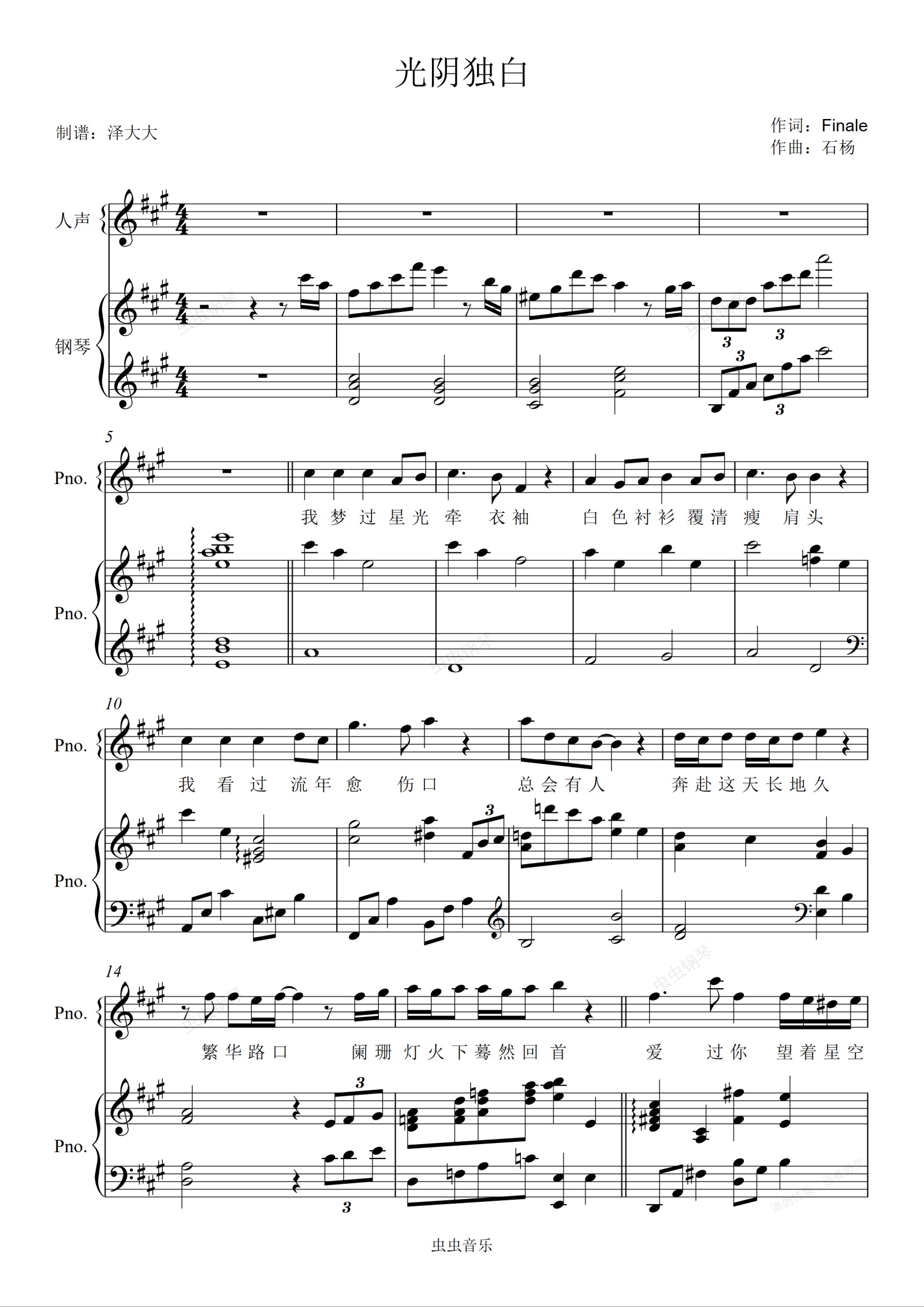 钢琴谱:光阴独白【免费原版弹唱附词】泽大大 徐佳莹
