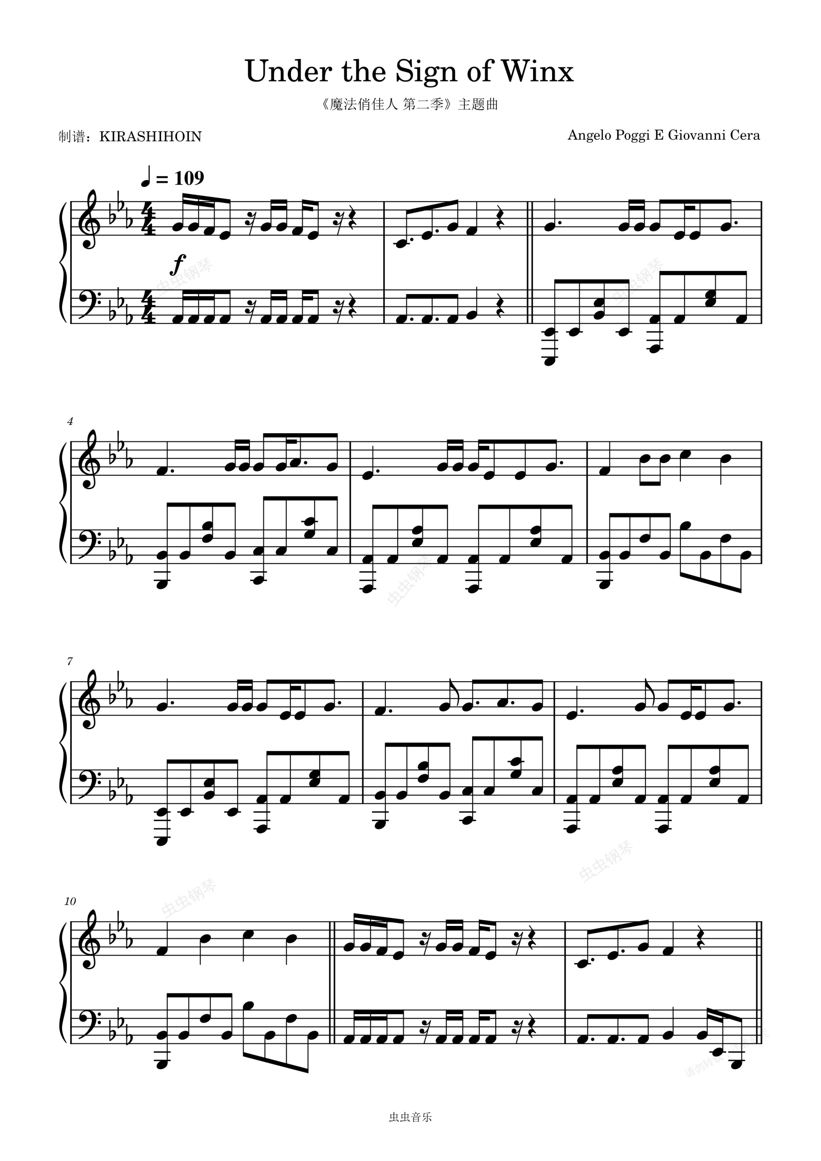 钢琴谱:Under the Sign of Winx(《魔法俏佳人 第二季》主题曲)