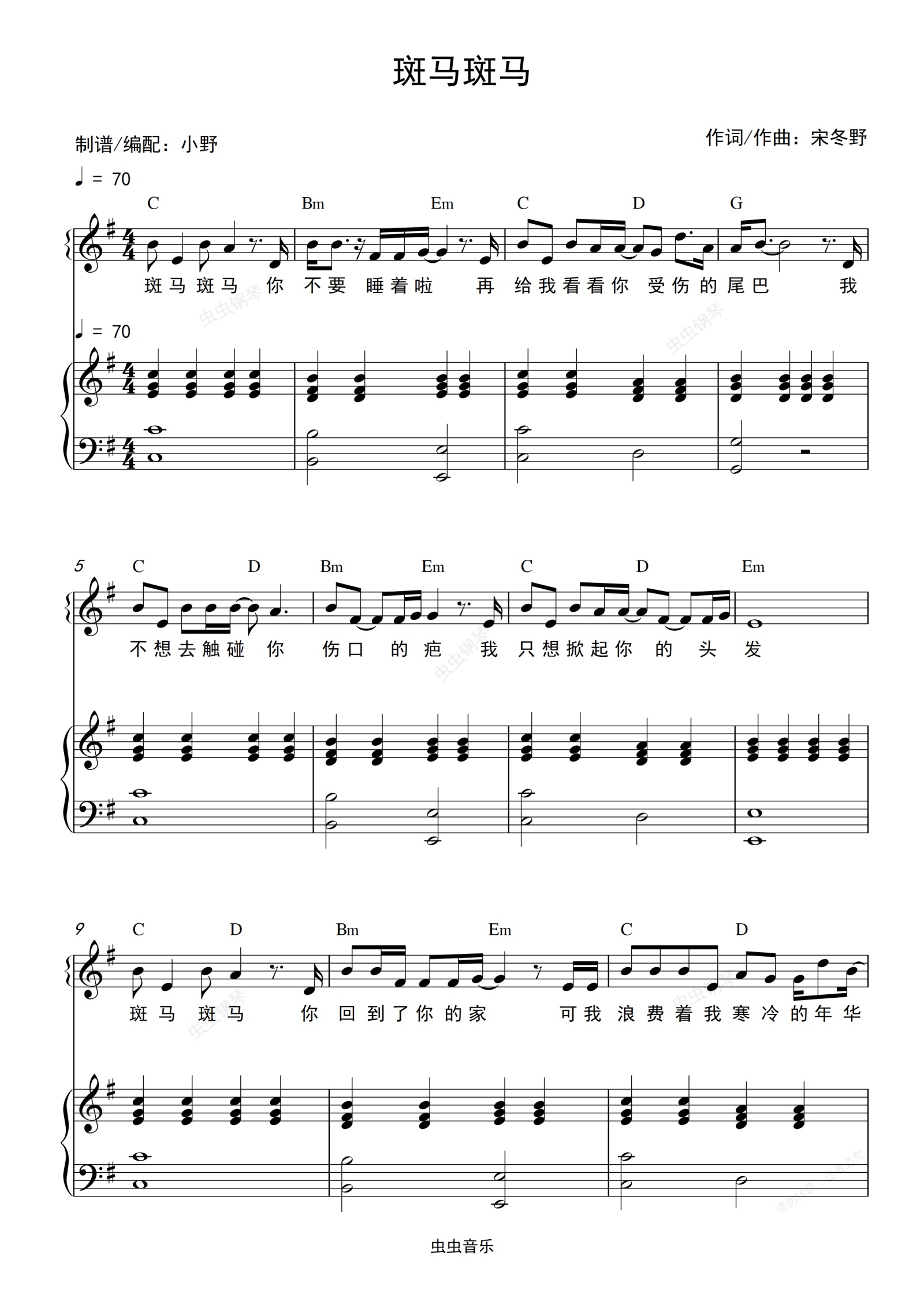 钢琴谱:斑马斑马(和弦弹唱版)