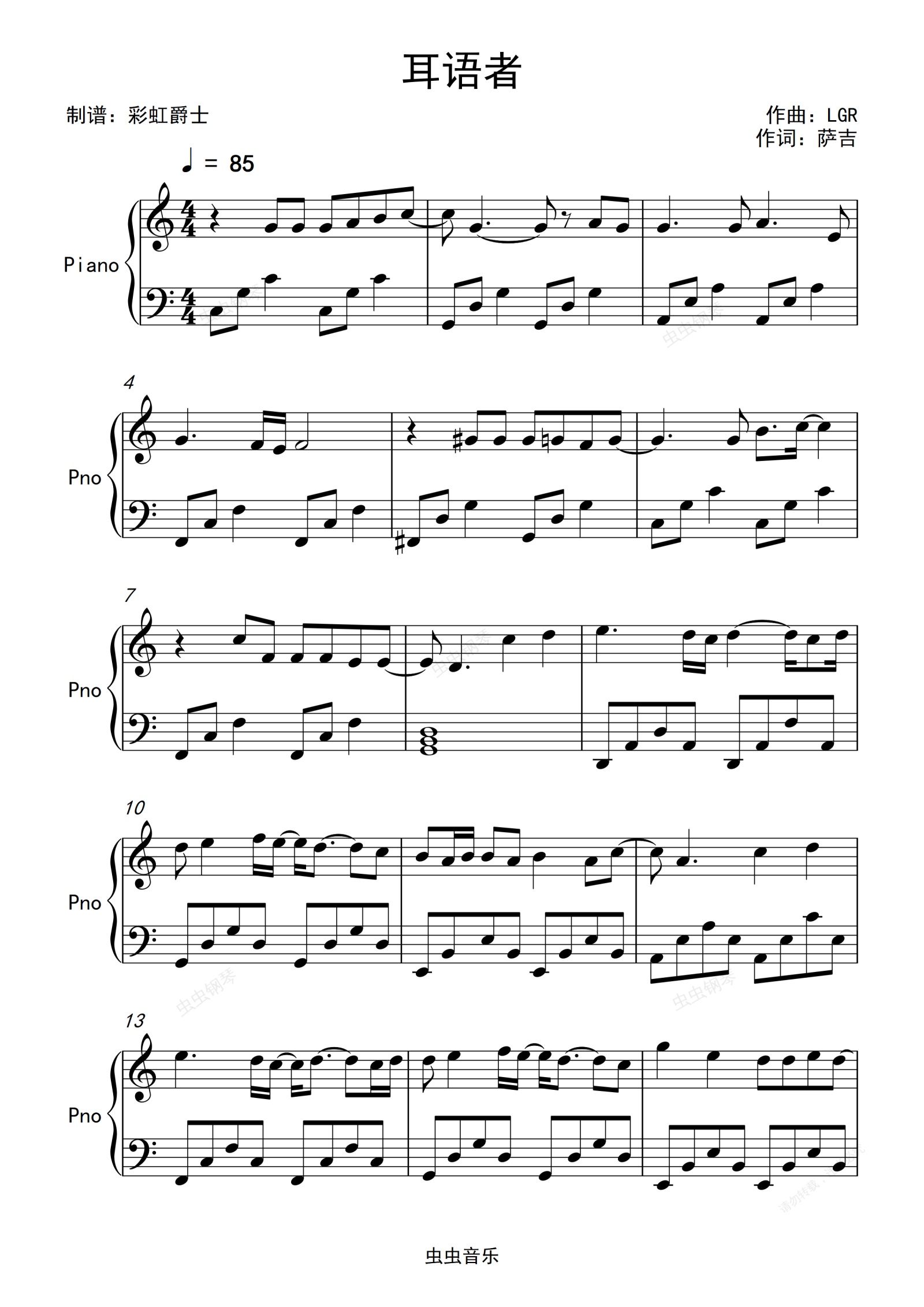 钢琴谱:梁洁 耳语者-C调简单版-变成你的那一天片头曲