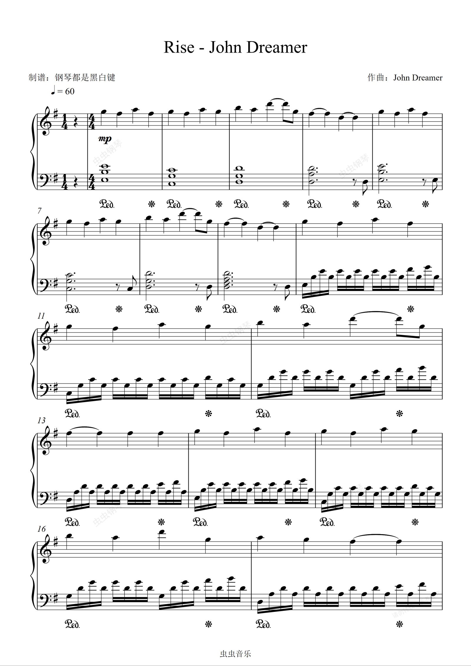 钢琴谱:【治愈系纯音乐】Rise - John Dreamer