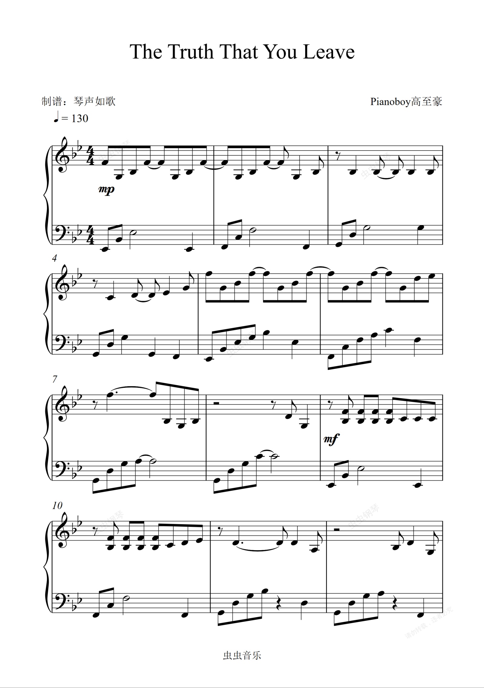 钢琴谱:The Truth That You Leave-Pianoboy高至豪
