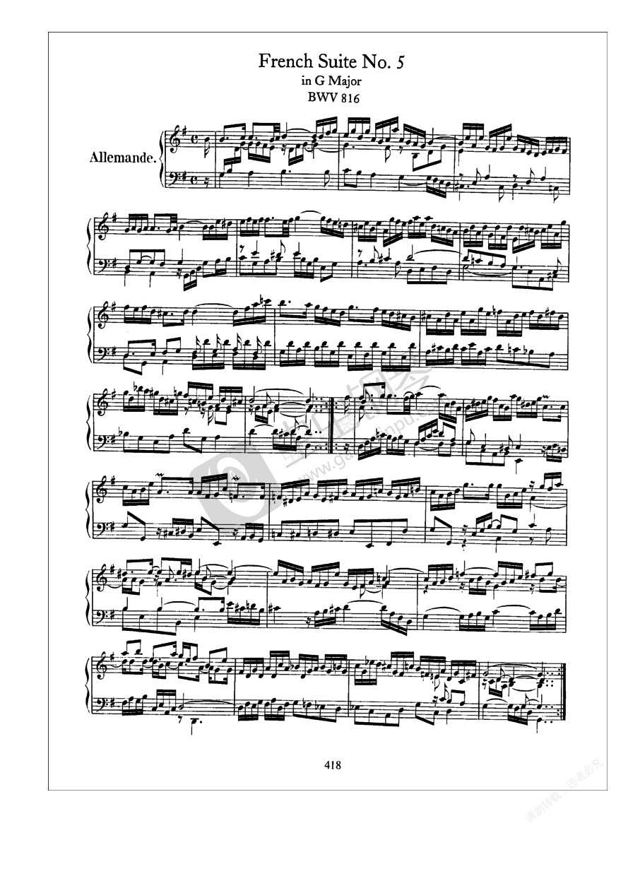 法国组曲 French Suites BWV 812-817(French Suite No 5 in G, BWV 816)