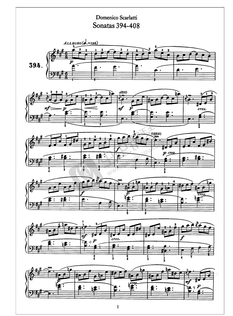 500首钢琴奏鸣曲(共33册)(Scarlatti Sonatas 394-408)
