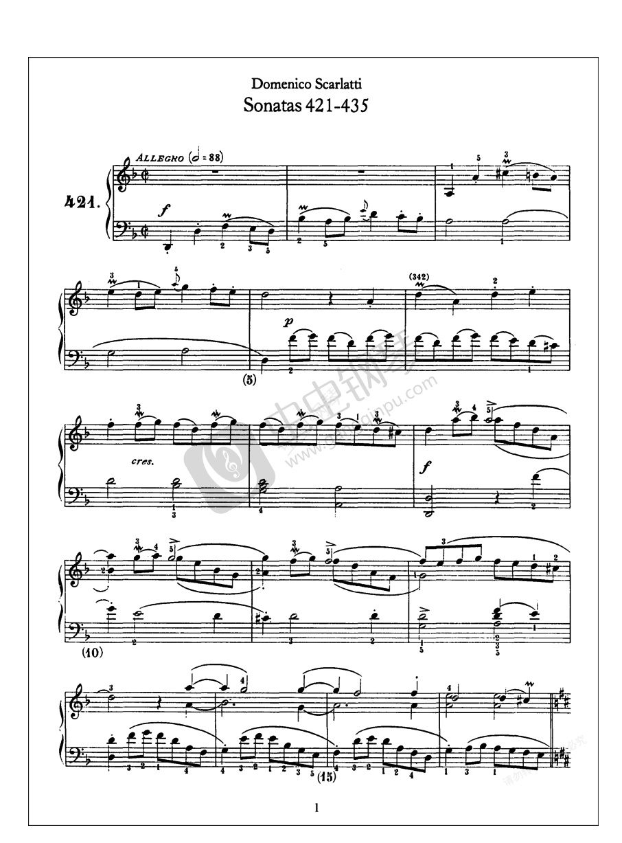 500首钢琴奏鸣曲(共33册)(Scarlatti Sonatas 421-435)