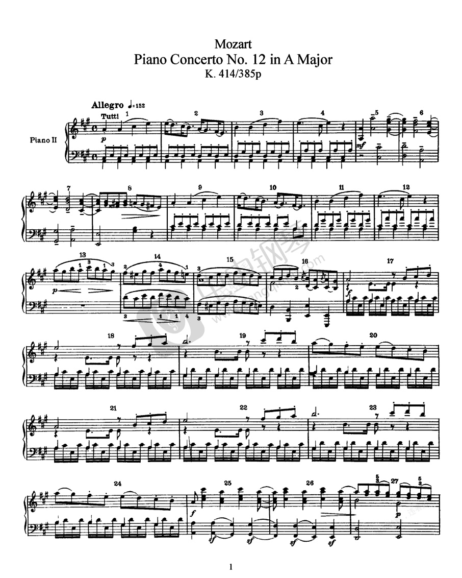 钢琴协奏曲全集 Piano Concertos(Mozart - Concerto no 12 K 414 - 385p - 2 Piano)