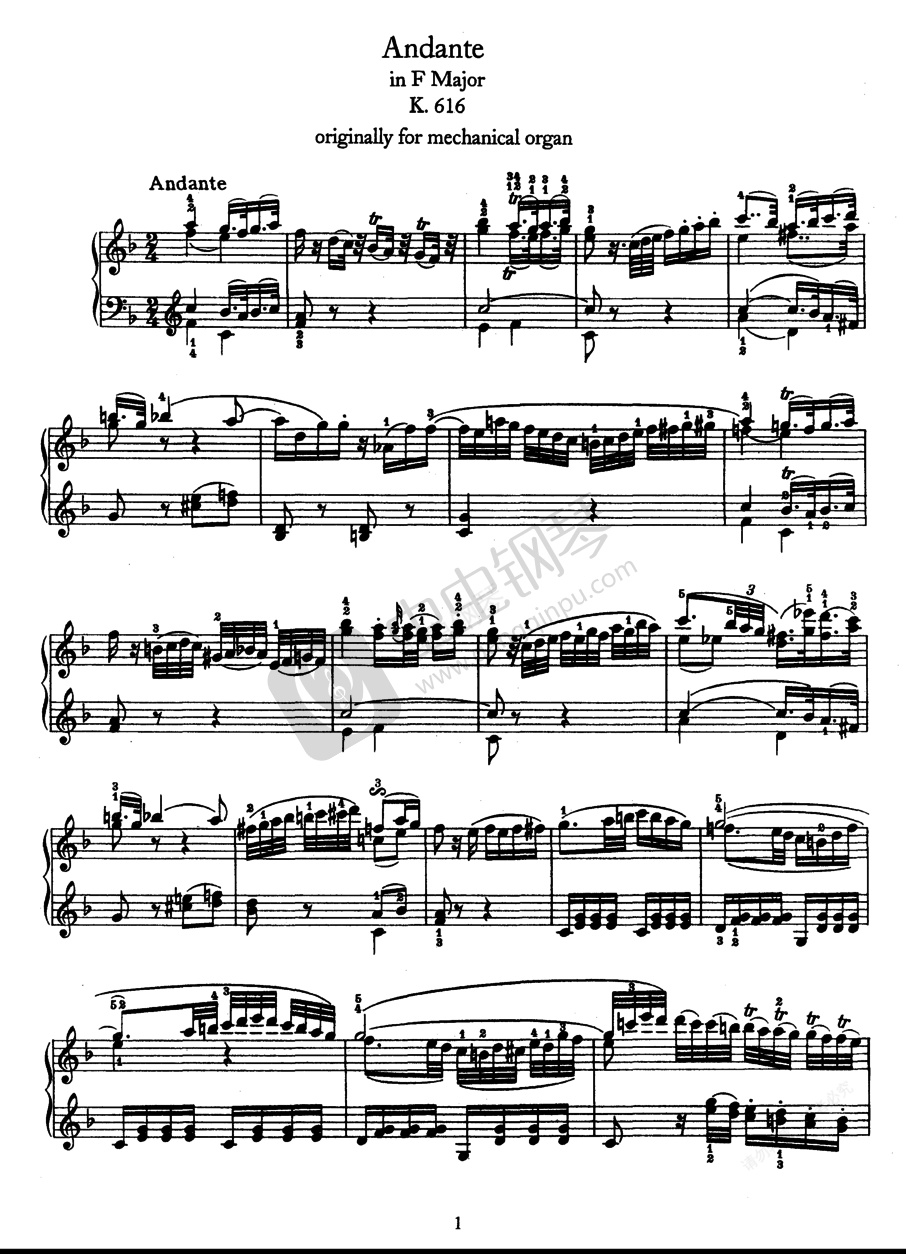 钢琴谱:F大调行板 Andante in F Major K.616