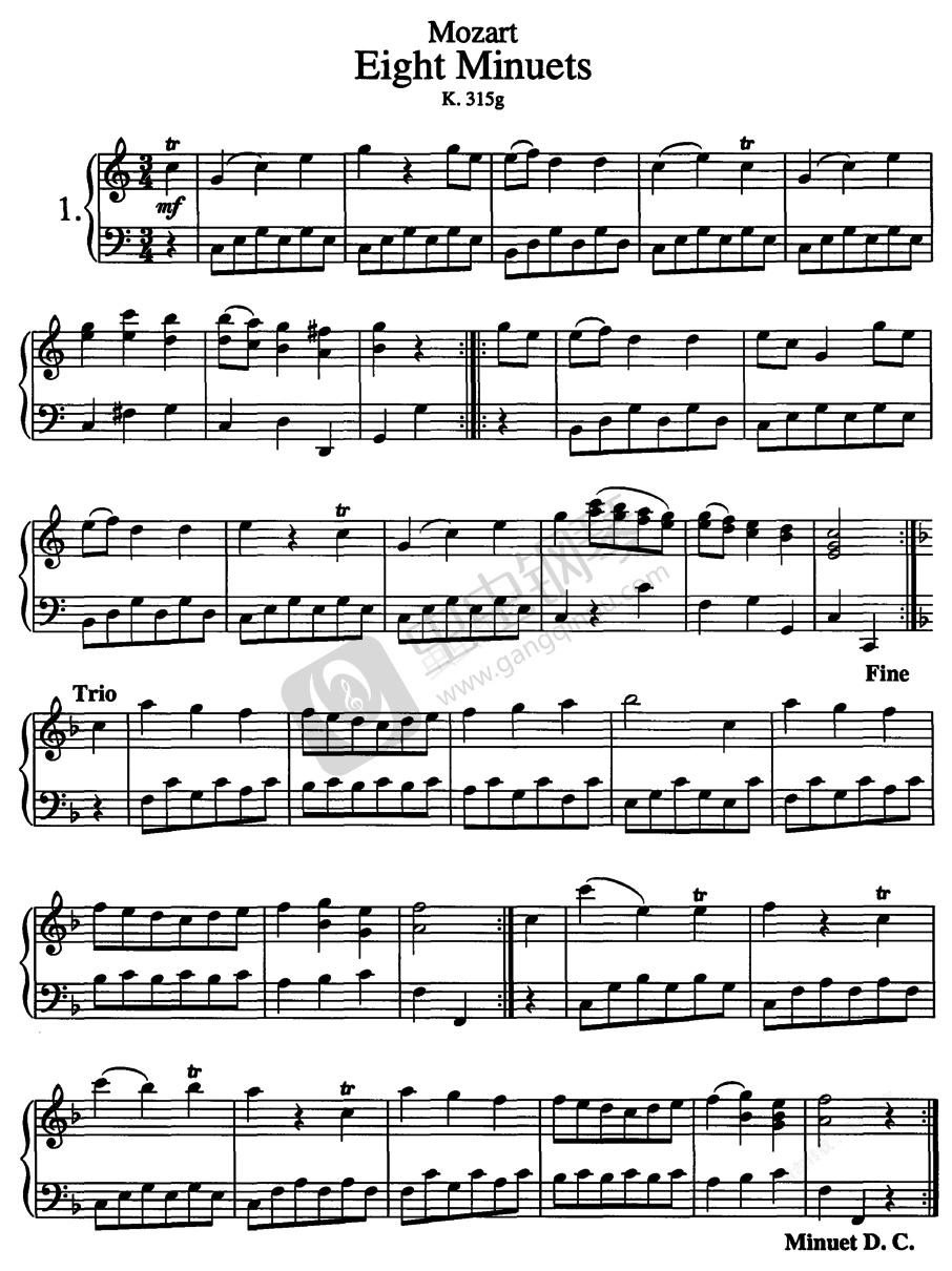 钢琴谱:8首小步舞曲 8 Minuets K.315g
