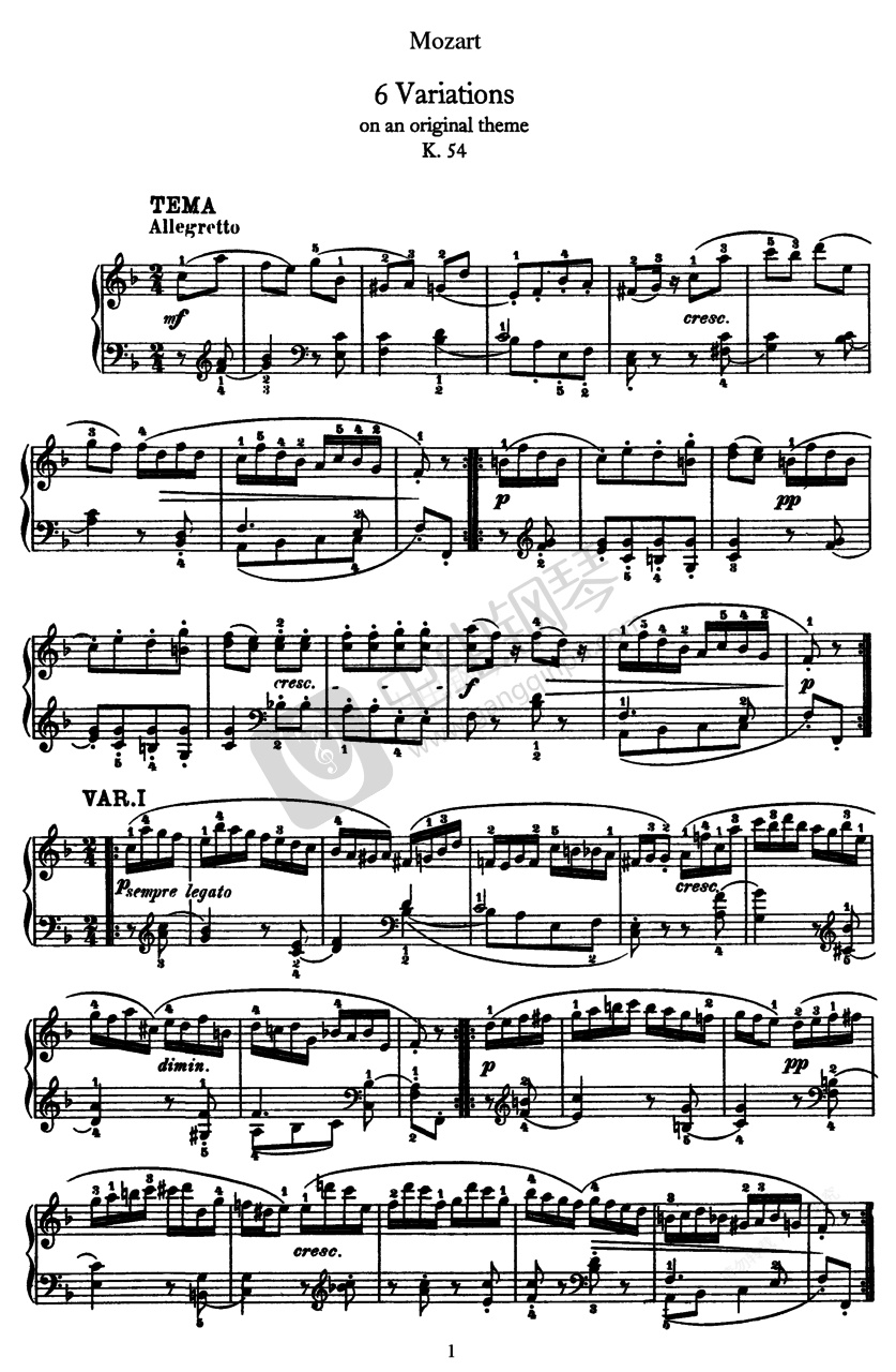 钢琴谱:F大调原创主题变奏曲 K.54/547b