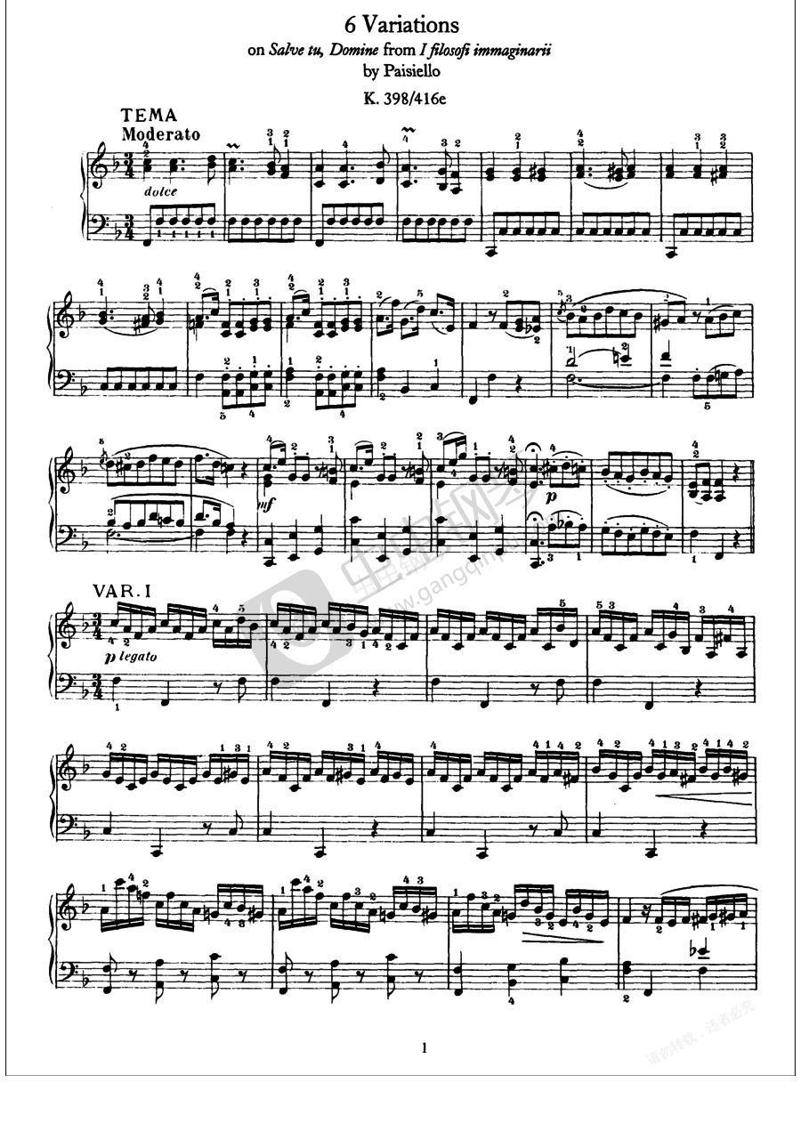 您的位置: 首页 > 钢琴谱库 > F大调钢琴变奏曲 K.398/416e