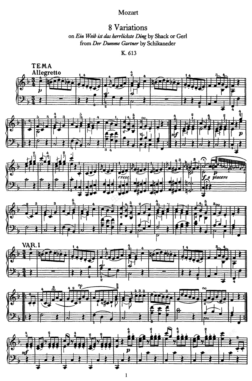 您的位置: 首页 > 钢琴谱库 > F大调钢琴变奏曲 K.613