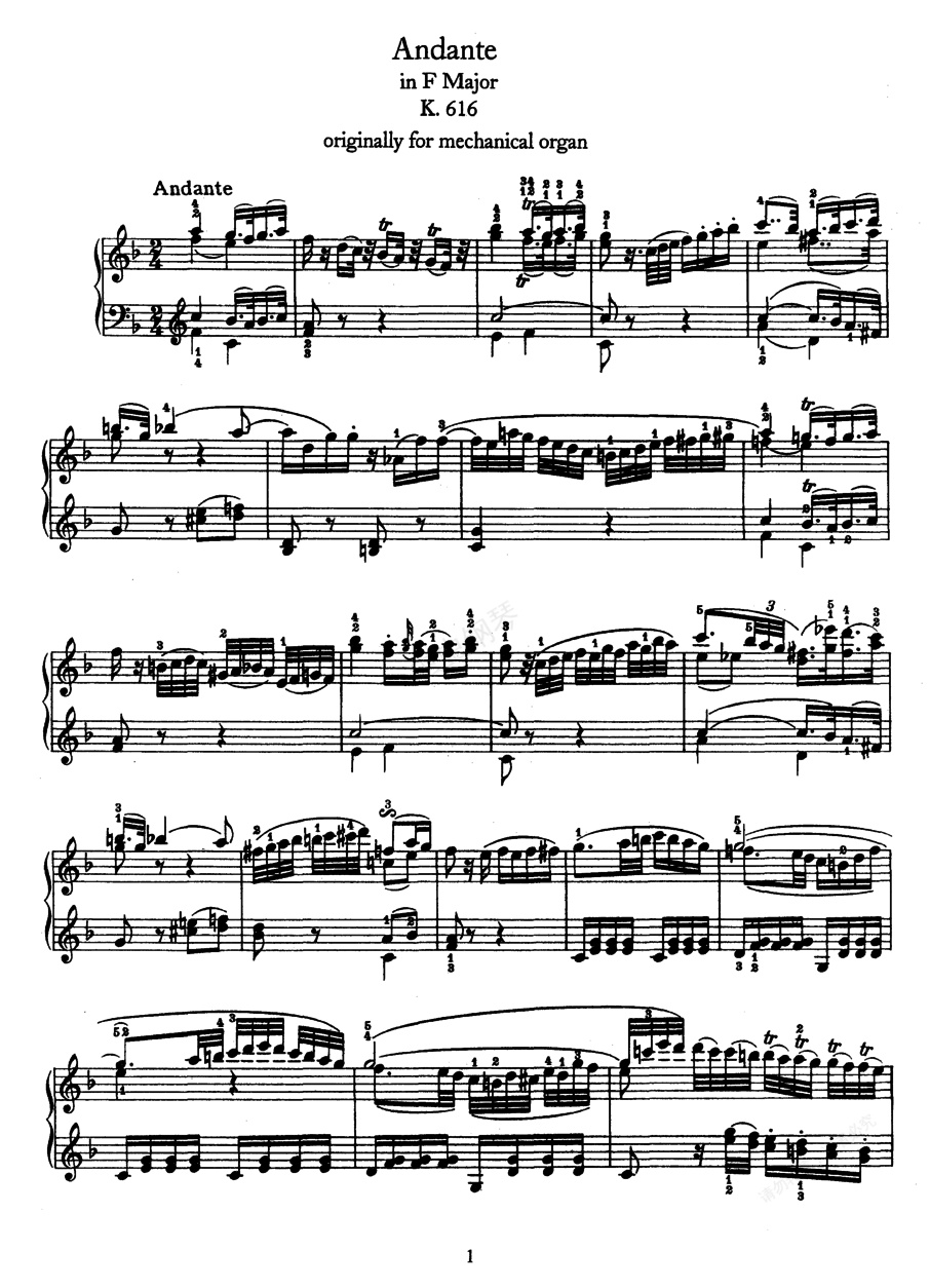 钢琴谱:F大调行板 Andante in F Major K.616