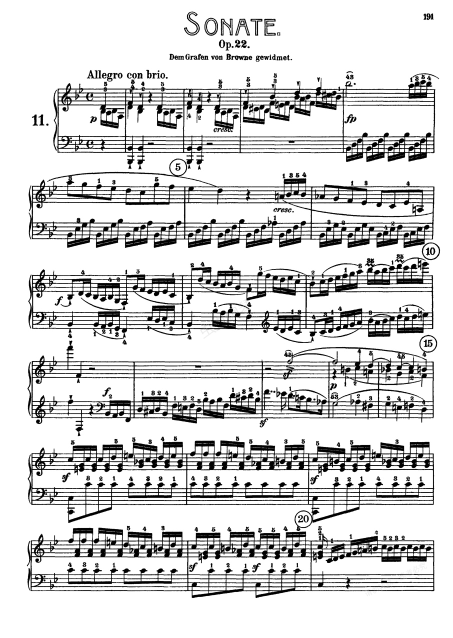 降B大调第十一钢琴奏鸣曲 Op.22