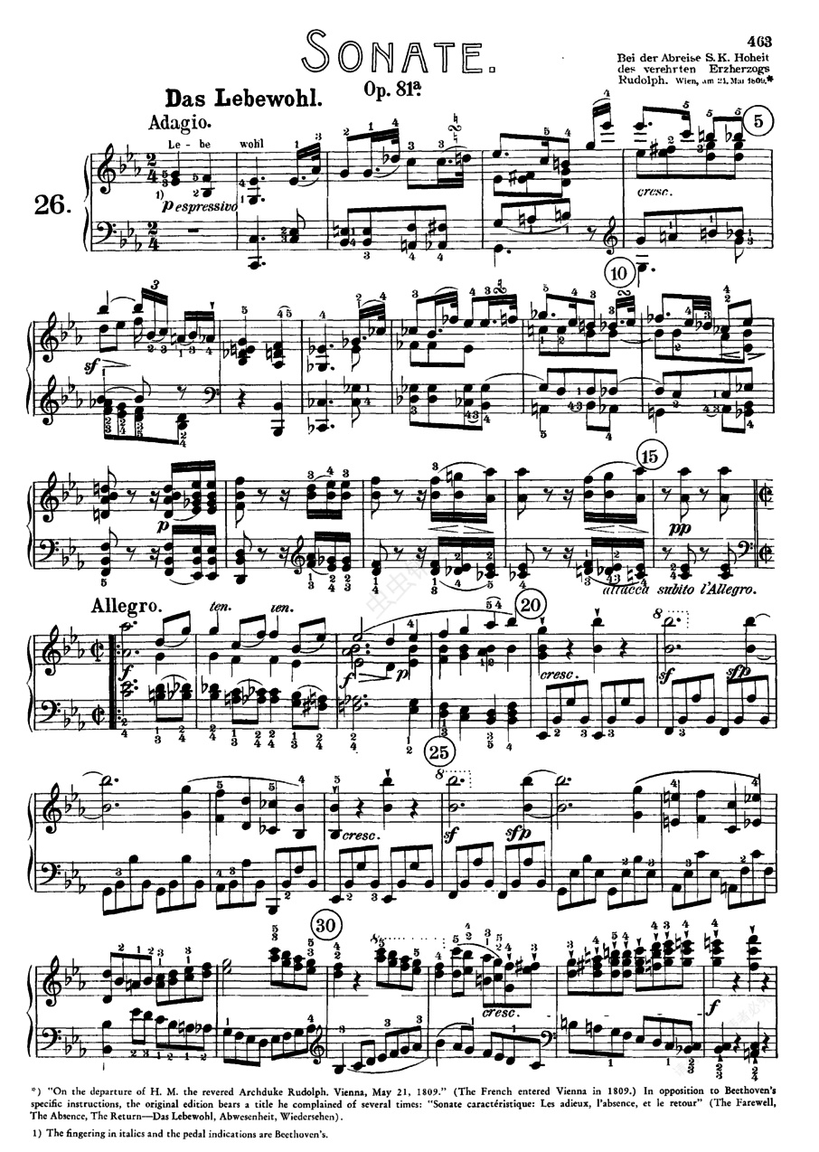 降E大调第二十六钢琴奏鸣曲“告别”Op.81