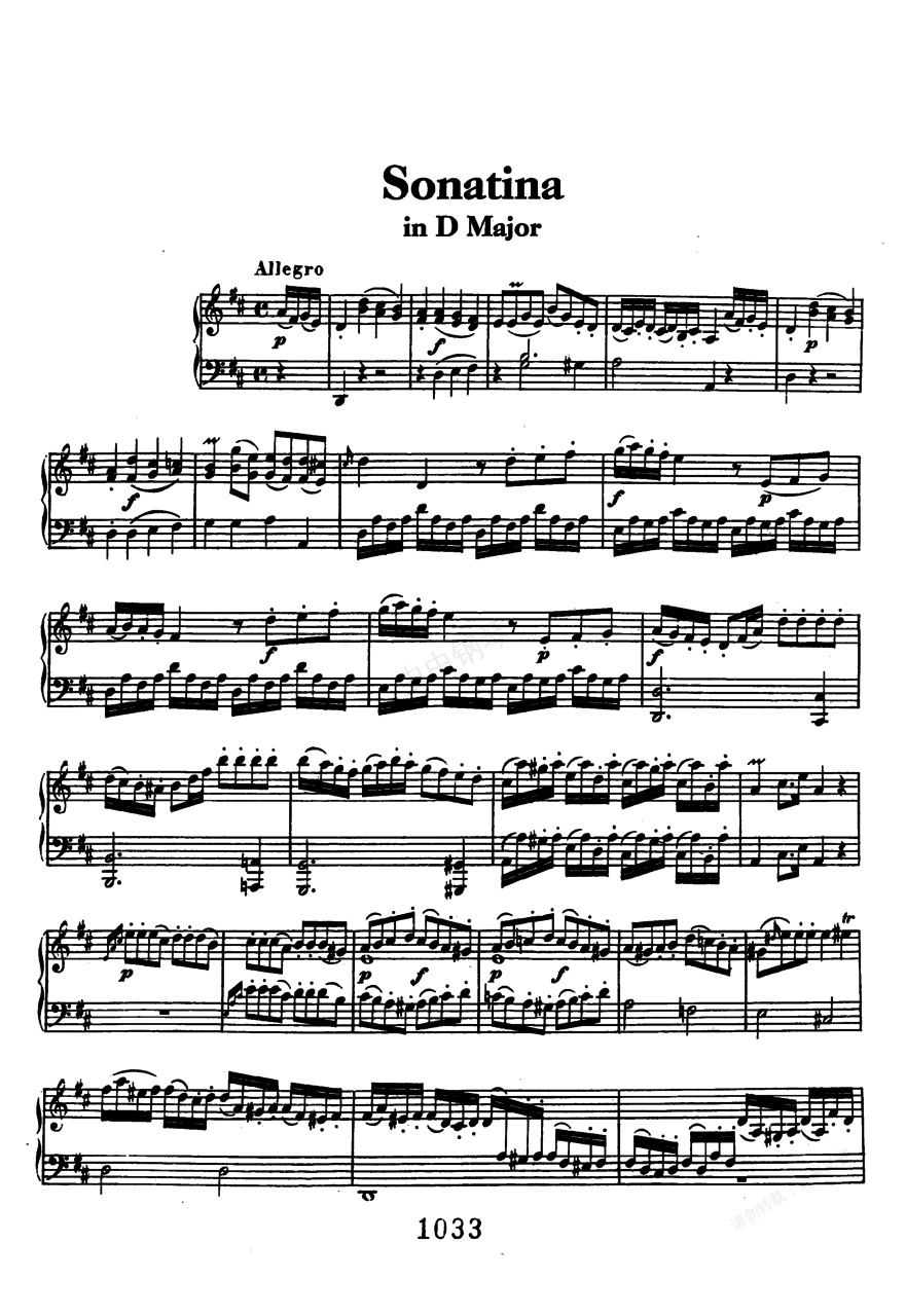 六首钢琴小奏鸣曲(Beethoven Sonatina in D)