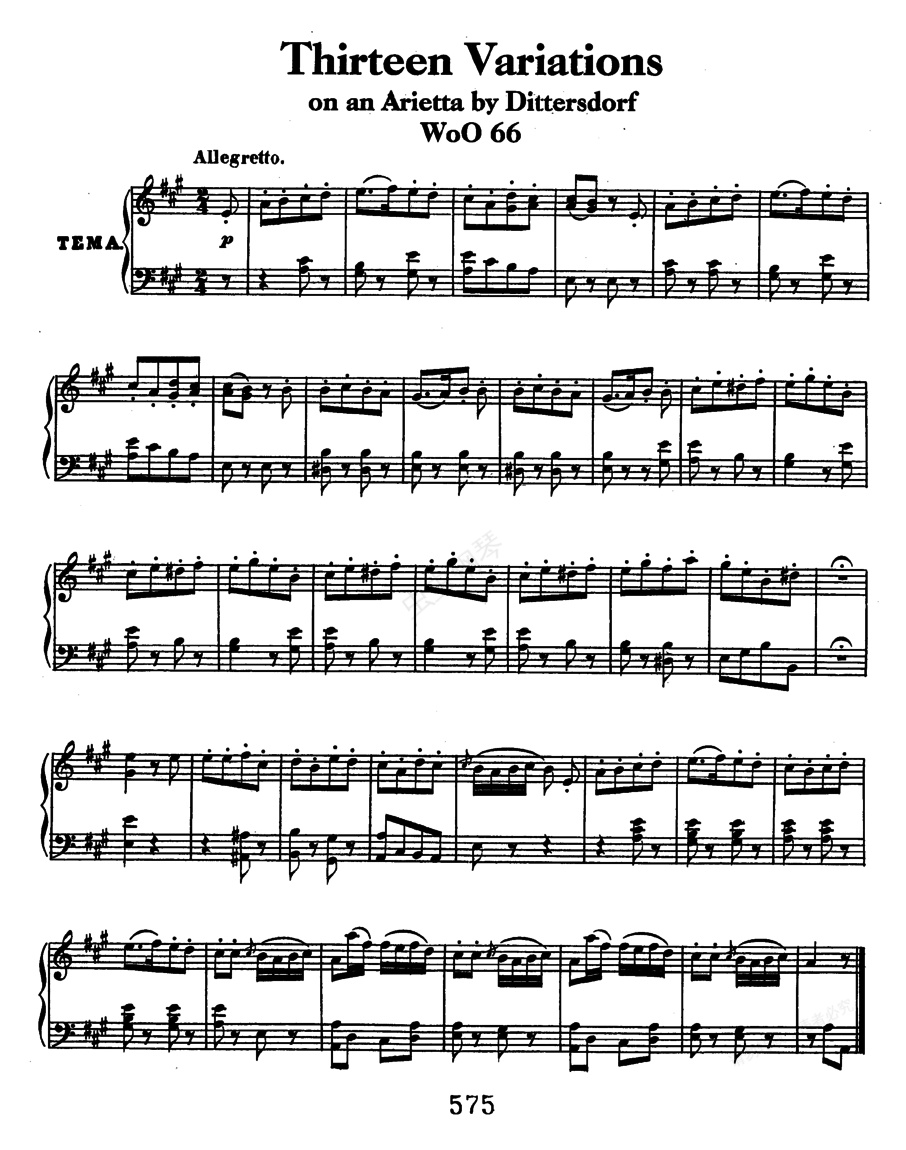 钢琴谱:迪塔斯多夫抒情小调主题变奏曲 WoO 66