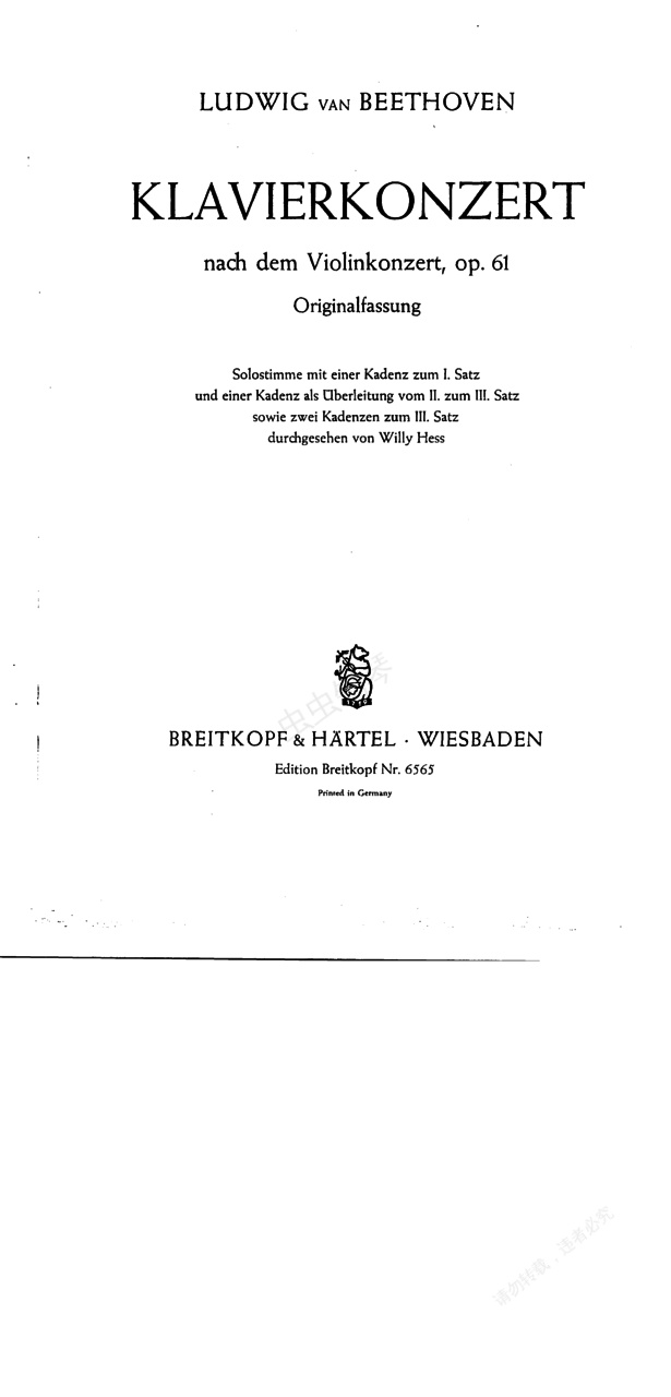D大调小提琴协奏曲Violin Concerto in D Major Op.61