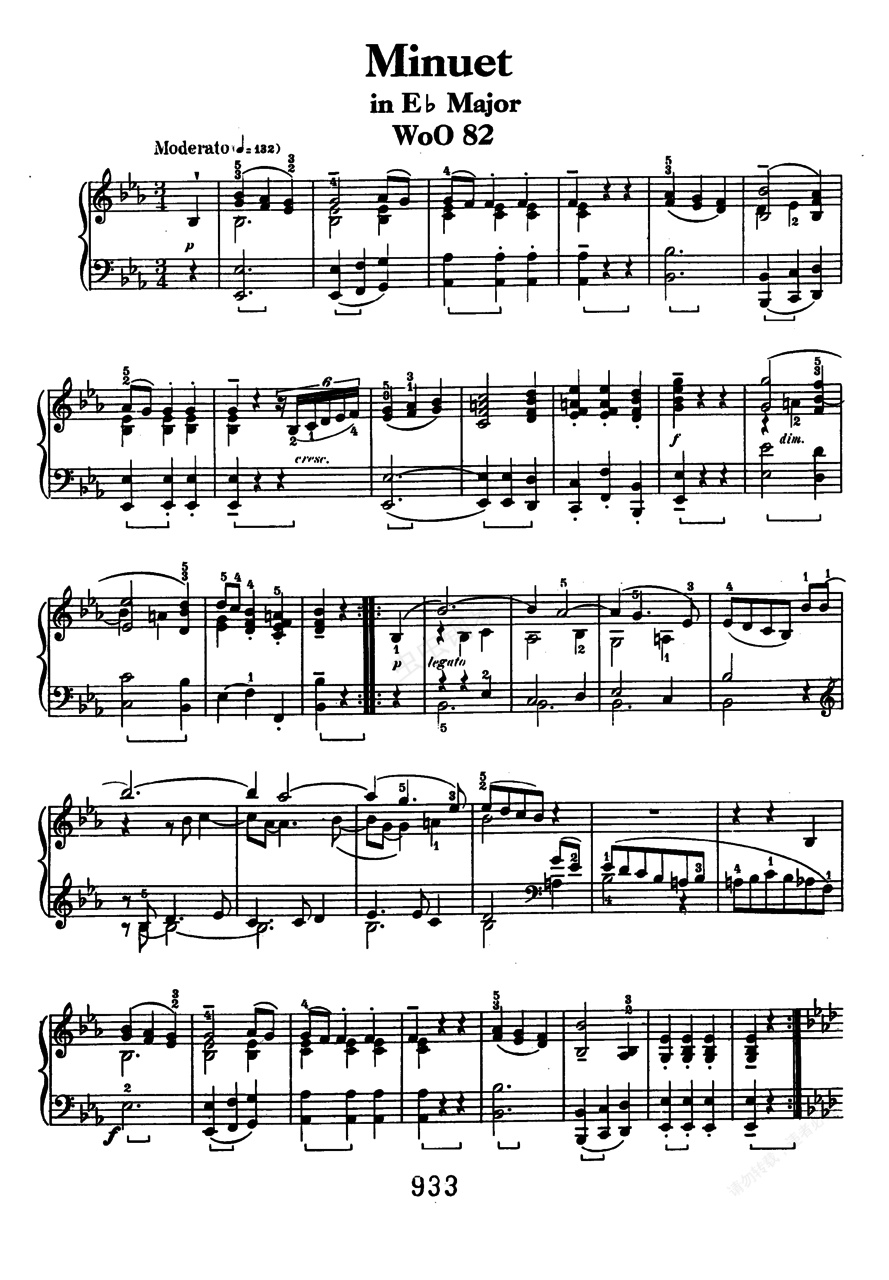 钢琴谱:降E大调小步舞曲 Minuet in E-flat Major WoO 82