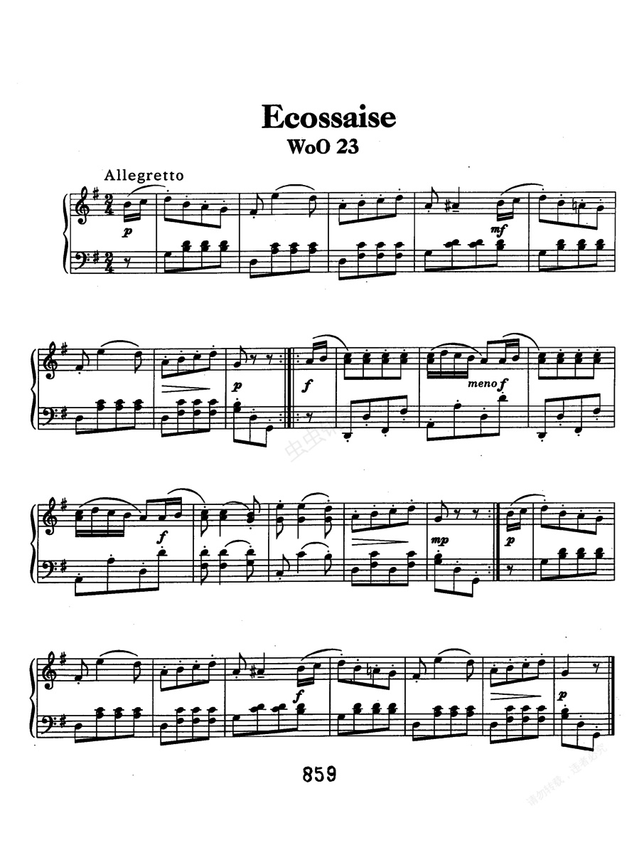 钢琴谱:G大调埃科塞斯舞曲 Ecossaise in G Major WoO 23