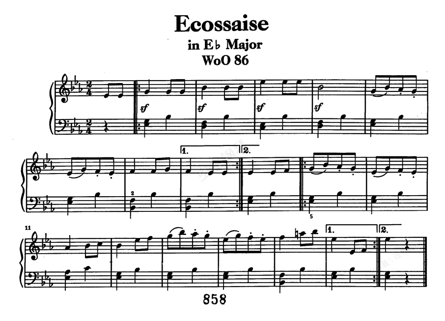 钢琴谱:降E大调埃科塞斯舞曲 Ecossaise in E-flat Major WoO 86