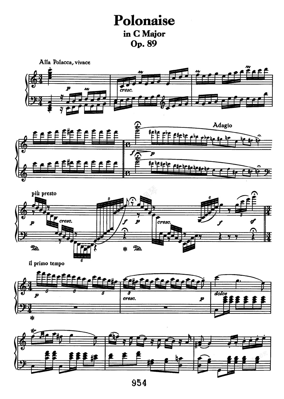 钢琴谱:C大调波兰舞曲 Polonaise in C Major Op.89