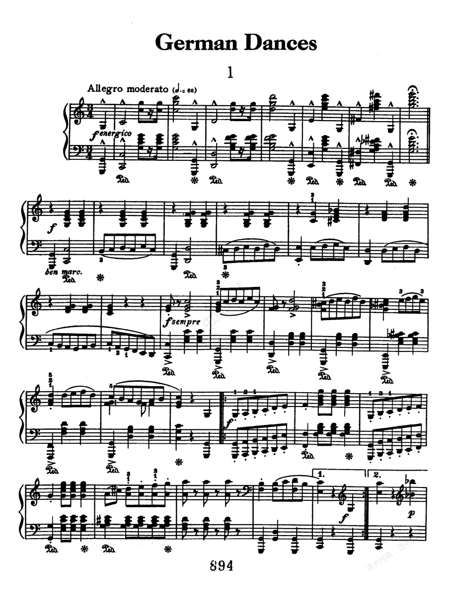 钢琴谱:6首德国舞曲 6 German Dances WoO 42 - 为小提琴与钢琴而作3首钢琴独奏版