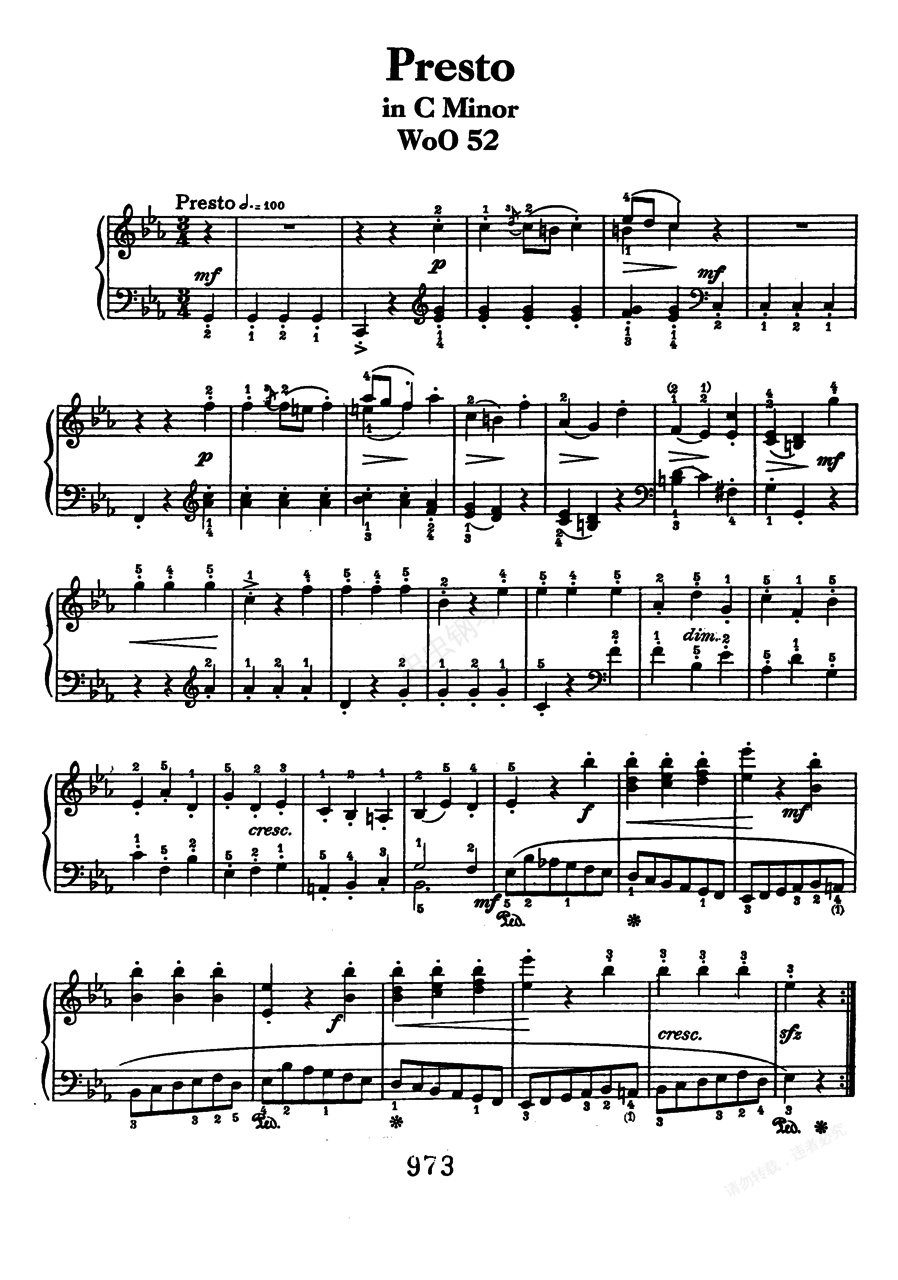 钢琴谱:c小调急板 Presto in c Minor WoO 52