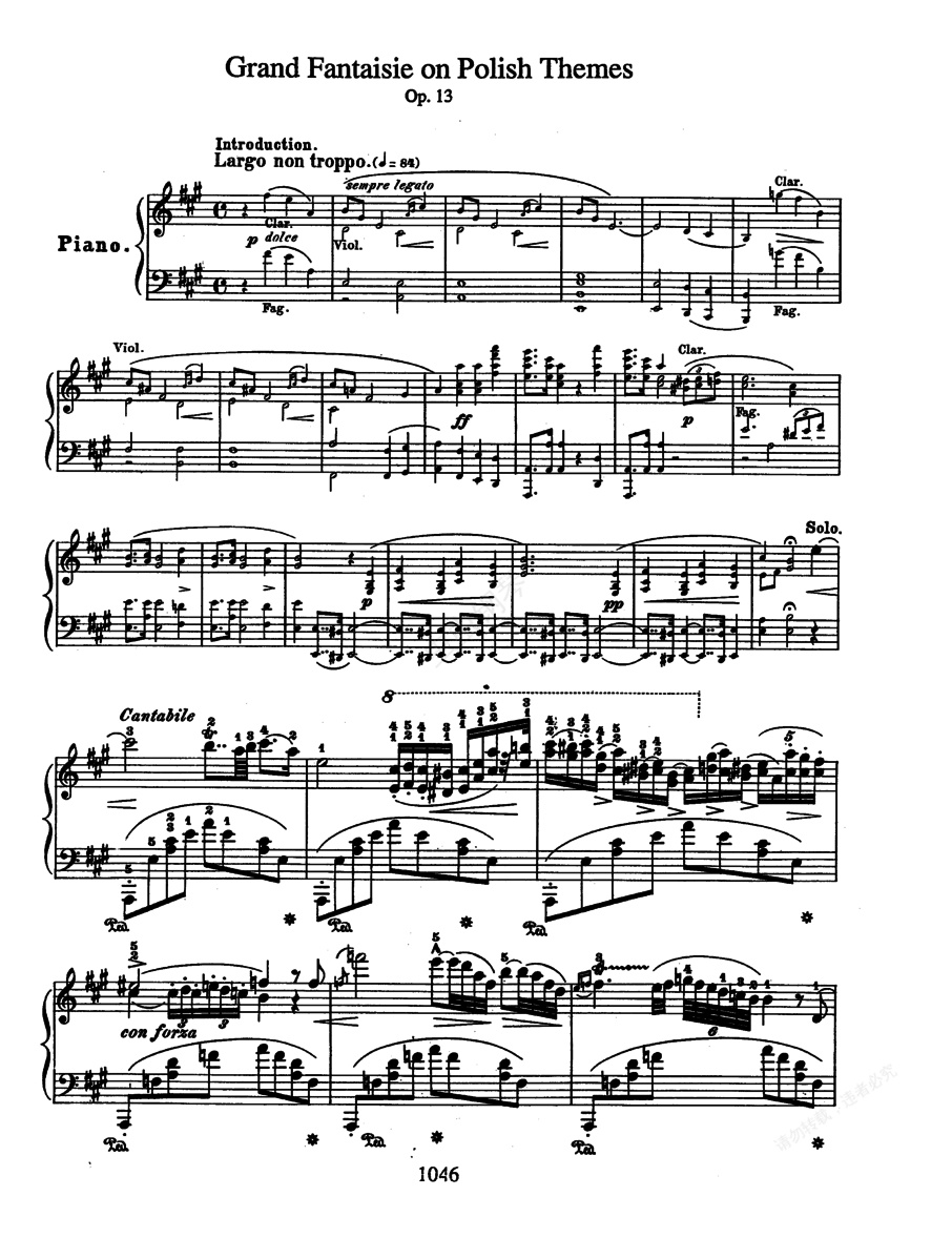钢琴谱:华丽的波兰民歌幻想曲 Op.13 - 为钢琴与乐队而作(Chopin op13 Grande Fantaisie on Polish Themes版本一)