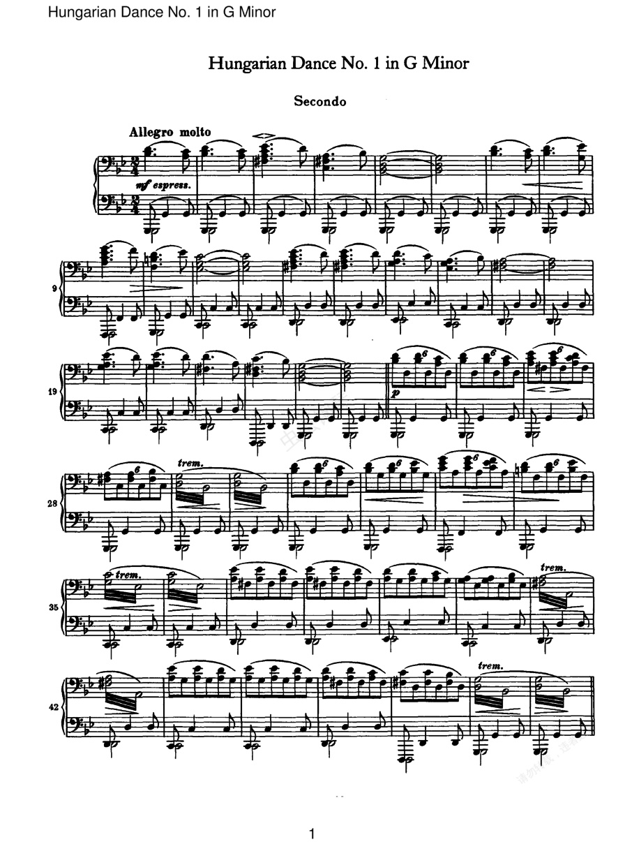 21首匈牙利舞曲 21 Hungarian Dances四手联弹(Brahms Hungarian Dance 01 in g (duet))