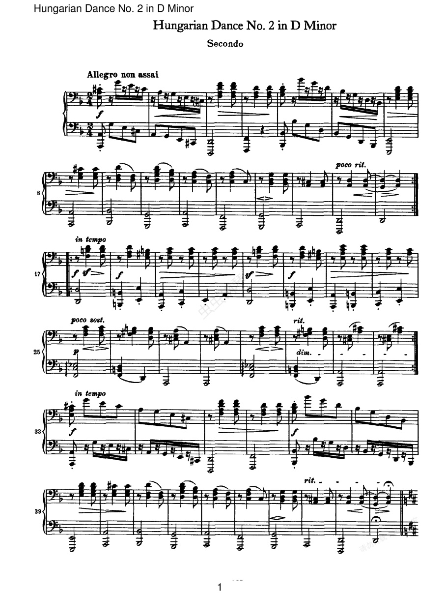 21首匈牙利舞曲 21 Hungarian Dances四手联弹(Brahms Hungarian Dance 02 in d (duet))